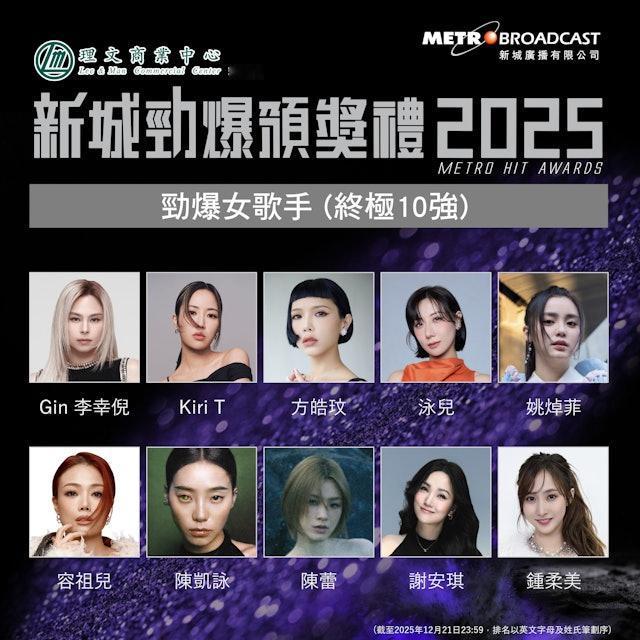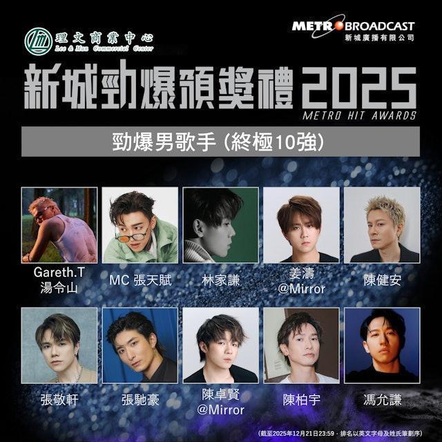 香港乐坛年终备受关注的《新城劲爆颁奖礼2025》将于12月27日下午在香港会议展览中心隆重举行。今年入围名单十分强大,劲爆歌曲就有228首,劲爆男女歌手分别有79、66位候选人,乐队及组合也有42组候选,其中影帝张家辉也凭着《赎梦者》获得提名劲爆男歌手,这次将有“劲爆男歌手”、“劲爆女歌手”、“劲爆乐队”、“劲爆组合”、“劲爆男新人”、“劲爆女新人”、“劲爆新乐队/组合”及“劲爆歌曲”八大奖项,其中备受关注的劲爆男、女歌手竞争十分激烈,经过之前的投票,终极十強名单也正式揭晓。 劲爆男歌手(终极10强)名单包括张敬轩、姜涛、汤令山、张天赋、林家谦、陈健安、张驰豪、陈卓贤、陈柏宇及冯允谦。   劲爆女歌手(终极10强)包括泳儿、李幸倪、容祖儿、Kiri T、方皓玟、姚焯菲、陈凯咏、陈蕾、谢安琪及钟柔美。   近年来香港乐坛确实涌现出许多作品及组合,但真正能让大众为之熟悉并且传唱的歌曲是少之又少,前辈已经老去,年轻一代能否接力香港乐坛,看来是任重而道远!