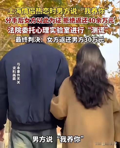 上海吴某对女友陈某说“我养你”,同居后,陈某偷偷把吴某卡里40多万转给自己母亲,然后玩失踪。吴某一怒之下,告陈某,陈某却委屈哭着说:“你说要养我的,这钱我就有支配权”。 男子吴某掏心掏肺,一年攒下40多万,全放进和女友陈某的共同账户。 满心以为是为婚房添砖加瓦,转头就被女友卷走,连人带钱消失得无影无踪。 等吴某找到人要说法,陈某反倒理直气壮。“你自己当初说要养我的,这钱凭啥要回去?” 这话一出口,真是让人瞠目结舌。 吴某和陈某原本是同事,天天低头不见抬头见,慢慢就生出了情愫。 2023年12月,两人确定关系后就租了房,正式开始同居。吴某对陈某是真上心,同居后家里大小开销全承包了。 他基本工资不算高,但奖金给力,运气好的时候一个月能拿好几万。反观陈某,工资不高,攒下的钱也只是零星一点。 短短一年不到,共同账户里就存了40多万,几乎全是吴某的功劳。变故发生在陈某被裁员后。 公司效益不好,她成了被裁的一员,伤心地跟吴某哭诉。吴某心疼女友,安慰她的时候,还学星爷在电影里对柏芝说的台词:“没事,我养你啊!”这话让陈某瞬间破涕为笑,满心都是感动。 2024年10月,恋爱快一年,吴某觉得该给陈某一个交代。他带着陈某回了老家,父母见了陈某特别满意,当场给了11200元的订婚礼金。 之后两人又去了陈某老家,为了表诚意,吴某花2万给陈某买了黄金手镯,给她父母买礼物又花了3万。 可这次见面,吴某心里总觉得有点不对劲。说不上来哪里怪,就是隐约觉得陈某和她家人,好像有点太看重钱了。 10月底,陈某的母亲突然跑到两人租的房子里住。几天,吴某就发现不对劲——共同账户里的57万,被陈某偷偷转给了她妈。 这些钱,原本是两人计划用来买房的首付。吴某心里不舒服,觉得陈某这么做太不地道,但念及感情,还是没好意思指责。 他以为只是小矛盾,沟通一下就好。可他万万没料到,这只是陈某“跑路”的前奏。 12月初,吴某发现自己手机里和陈某的聊天记录全没了。 他还没来得及问,陈某就带着母亲收拾了所有东西,不告而别。 吴某急得团团转,好不容易联系上陈某,得到的却是分手的通知。 这一刻,吴某彻底心凉了。他拿出所有积蓄,付出全部真心,换来的却是这样的结果。 愤怒之下,吴某把陈某告上了法院,要求她返还订婚礼金、购房存款、房租等共计38万元。 法庭上,陈某哭得梨花带雨,一副受了天大委屈的样子。她搬出《民法典》第7条,说民事活动要讲诚信,吴某当初承诺养她,现在反悔要还钱,就是违背诚信。“他说养我,那我的钱自然由我支配,转给我妈怎么了?” 吴某气得浑身发抖,当场反驳。“我是说过养你,但没说把所有钱都给你自由处置!这是我们的共同财产,你一声不吭全转走,跟偷有什么区别?” 双方各执一词,调解根本没用。因为证据不足,法院提议进行测谎,两人都同意了。 可能很多人不知道,测谎在司法实践中确实存在,只是不常用。现在的测谎技术都能用到脑电波检测了,准确率高达89.7%。 测谎结果一出来,真相一目了然。吴某的测试全票通过,而陈某的大部分项目都没通过。 法院最终认定,吴某往共同账户存钱,目的是为了买房结婚,不是单纯赠与陈某。 至于那句“我养你”,只是女友失业后的安慰,让她不用为生活发愁,不是把所有财产都赠与她的承诺。 还有吴某父母给的礼金、买的黄金手镯,都是以结婚为目的的彩礼。现在两人分手了,这些东西自然该返还。 最终判决下来,陈某要返还吴某30万元,12000元的测谎费,两人平摊。 其实类似的事儿也不是第一次发生,之前就有情侣恋爱时一方承诺赠与财产,还签了承诺书,结果分手后闹上法庭,320万的“爱情账”扯了好久。 只是吴某这事,更让人唏嘘。一句“我养你”,本是情侣间最深情的承诺。却被陈某当成了肆意挥霍、侵占他人财产的借口。 感情里最忌讳的,就是把对方的真心当理所当然,把甜言蜜语当免责金牌。 吴某掏心掏肺,想给爱人一个未来。陈某却步步为营,把感情当成了赚钱的工具。 法院的判决算是给了吴某一个公道,但那段被辜负的真心,恐怕很难复原。都说谈钱伤感情,可不谈钱,又怎么看清一个人的真心? 真心换真心,才能走得长远。要是一开始就抱着算计的心思,再好的感情,也迟早会散。