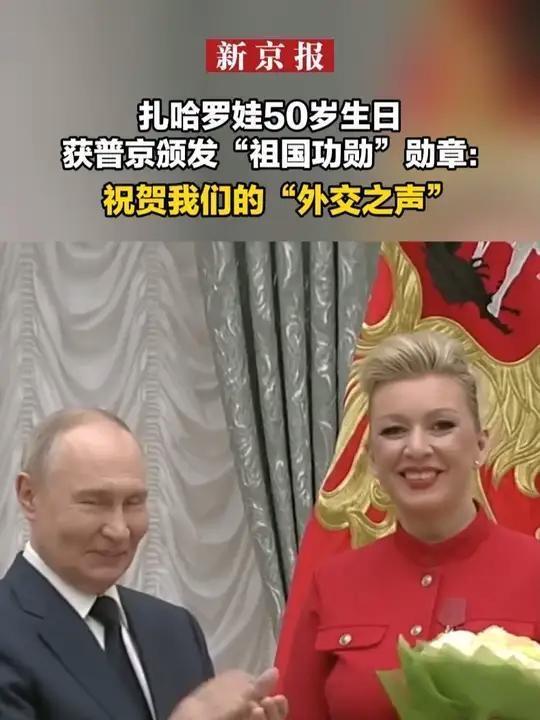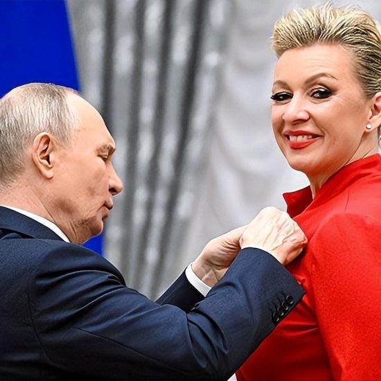 12月24日,俄罗斯总统普京在克里姆林宫为外交部发言人玛丽亚·扎哈罗娃颁发四级“祖国功勋”勋章,以此为她庆祝50岁生日。普京盛赞扎哈罗娃为俄罗斯的“外交之声”,并特意赠予她一个酒红色首饰盒;扎哈罗娃则回赠了亲笔撰写的文章,场面温馨且意义非凡。玛丽亚·扎哈罗娃与以前的照片对比明显胖了,年纪不饶人。