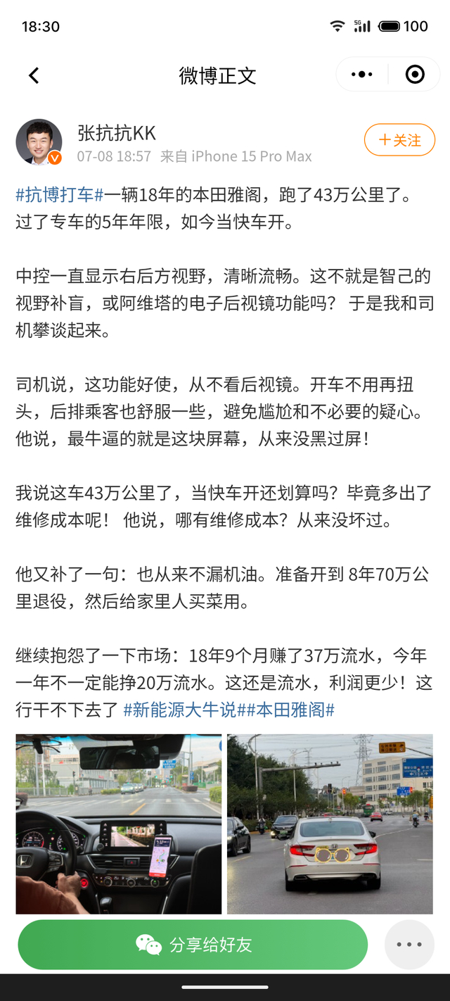 十代雅阁7.5万公里 1.油耗:之前的工作上班比较近,来回20公里左右,而且都是城区道路,比较堵,所以之前的平均油耗8~9个左右。最近换了工作,新工作来回80多公里,40%城区+60%高架道路,平均油耗降到了6个左右。我驾驶风格比较激进,红绿灯基本都是大脚油门起步,路上也是应超尽超,从不墨迹。一般在高架上都是超速9%左右。如果佛系开,油耗还能更低,有次油耗最低竟然开到了4.9个油,这个油耗我直接打消了置换混动车的想法。 2.转向手感:一个词形容就是“顺手”,我非常喜欢这车的地方就是这车的转向手感,随速度和随角度增益的阻尼变化非常细腻,再加上可变转向比加持,这车在例如路口的直角转弯,方向盘不需要很大的输入角,方向就能变过来,而且完成转向后,松开方向盘,方向盘就会非常快的自动回正,不会像有些不会回正的车,让你在转弯后还要手忙脚乱地人工回正方向盘,让人很慌。超车变道时,很小的角度输入,车身就会立刻响应,加上良好的车身跟随性,开起来在市区穿行可以说行云流水。因为有了这台车转向手感的对比,我再去开其他车,比如雪佛兰探界者Plus,别克君威,长安逸动plus,蔚来ET5T,感觉它们的转向都太轻了,基本所有的速度都是一个阻尼,非常不习惯。 3.底盘:底盘的滤震很柔韧,小的颠簸基本一次就完成,大的颠簸会感觉后桥的震动会硬一点,但基本都没有余震和多余的颤动。高速过弯时,比如像高架的匝道,底盘的支撑很好,给人的信心很足。 4.刹车脚感:完美。制动力和刹车踏板的行程高度统一,基本踩多少就会有多少制动力,这点对于城区行驶控制车距和跟车非常有帮助。不会像有的车前段非常灵敏,稍微一踩就刹停,也不会像有的车前面一段都是虚的,给人感觉刹不住。 5.动力总成:因为我是国五的车,还没受到GPF的制裁,所以绝对动力还可以,毕竟这么大个车04的尾速能到148,够用了。小油门加速基本随踩随有,不足的地方是大脚油门会出现一定的等待时间后再全力加速。切S档,这个等待时间会更短。低速走走停停,标准模式下,如果油门输入过大,这个车会顿一下,再往前走,切ECO模式这个问题会消失,这应该是这个车我唯一要吐槽的点。 6.故障:0 之前本来想去置换个混动,结果现在油车跌的厉害,根本卖不上价,需要补的钱太多。再加上最近油耗一直在6左右,我换混动的想法没有了,接着开吧。