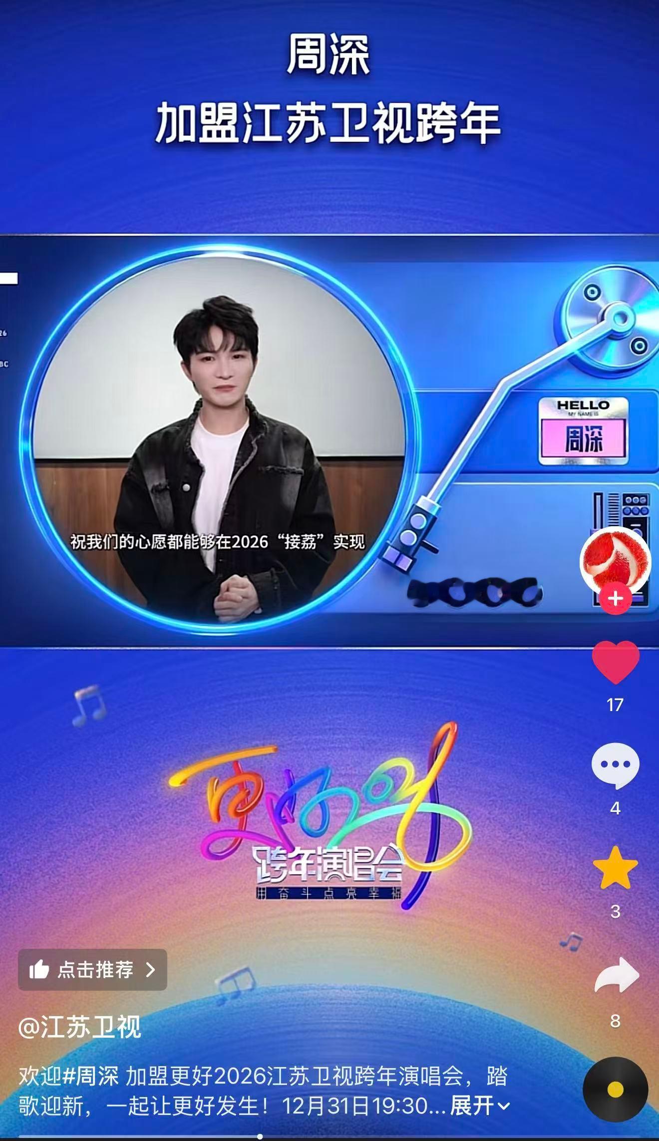 周深 📣 12.25 江苏跨年物料 📣【江苏卫视】多平台更新深深跨年口播米米们快来多多三连互动