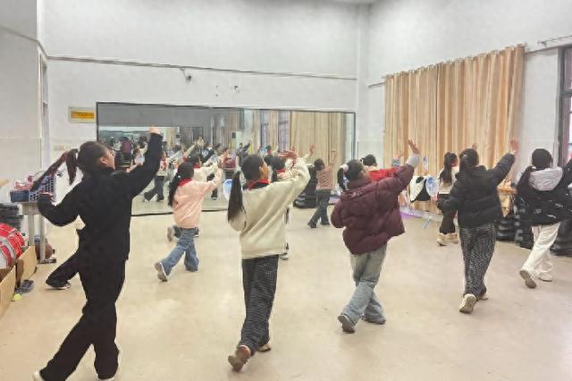 舞蹈社团正在排练《追梦少年》。同学们伴随着轻快的旋律,迈着整齐的步伐,舒展着优美的肢体。时而轻盈旋转,时而欢快跳跃,每一个动作都充满活力与朝气,将少年儿童对梦想的憧憬融入舞姿之中,赢得台下阵阵掌声。舞蹈社团胡晶老师介绍,同学们利用课余时间刻苦排练,不仅提升了舞蹈技能,更培养了团队协作意识。