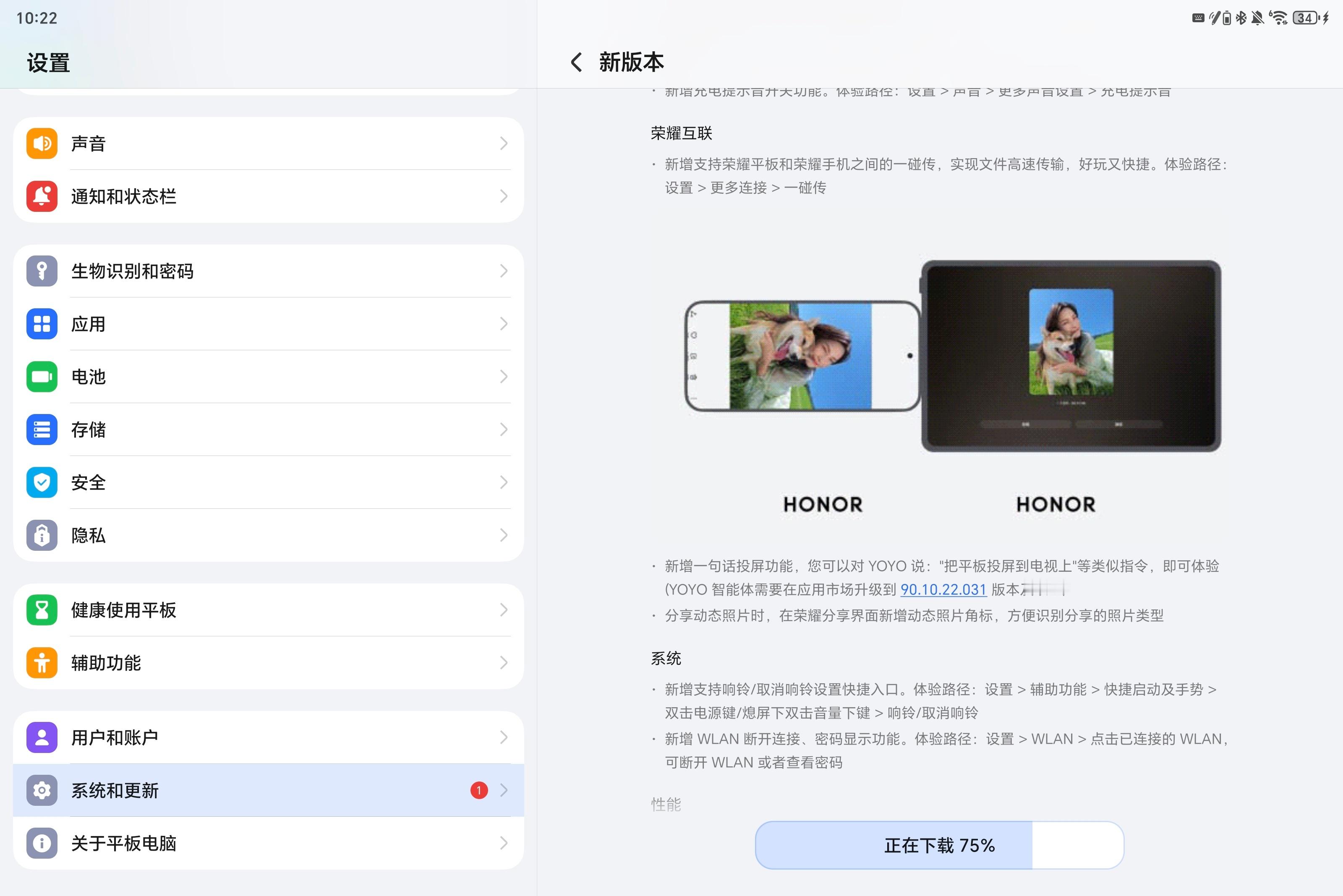 给MagicPad 3更新一下系统,新版本的PC模式也有了,PC级的交互,互联体验也都更好了。虽然我平时用平板的时间不会很多,但是手头还是得有平板,因为时不时就会需要用到,画画示意图啥的,还是平板好用。13寸的大平板用起来还是更爽,而且这块板子续航也贼好还有就是,荣耀的互传这块,各品牌都打通了,传资料是真的方便,还是不用说另外安装App的那种。各家赶紧都整出来吧,这是一个你好我好大家都好的功能。