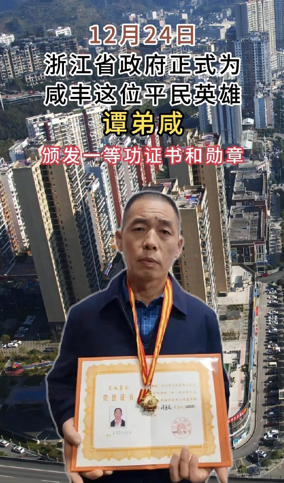 营救落水儿童的咸丰英雄谭弟咸身后架子上没有一件古董,甚至没有啥值钱的物件,但不影响大家对他竖起大拇指。 去年8月,绍兴上虞区四名儿童不慎落水,活龙人谭弟咸一次次扑进水里救人,四个孩子救上来三个。 24年11月上虞区给颁发三等功奖状,一年后浙江省给颁发一等功奖状。 谭弟咸只是一名普通务工人员,却能心有大爱,见义勇为。 事后采访,憨厚的他表示以后遇到相同的事,只要自己在场,还会尽全力救助别人。 没有光环却自带光芒的人,总是能让人由衷敬佩!