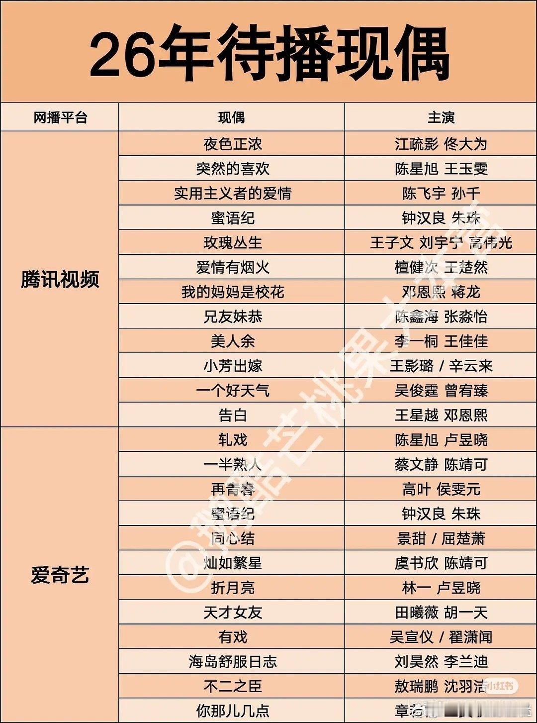 2026年待播现偶剧26年待播现偶剧26年待播现偶2026年待播现偶剧,想看哪一部🐧突然的喜欢 陈星旭 王玉雯实用主义者的爱情 陈飞宇 孙千玫瑰丛生 王子文 刘宇宁爱情有烟火 檀健次 王楚然兄友妹恭 陈鑫海 张淼怡告白 王星越 邓恩熙🥝轧戏 陈星旭 卢昱晓灿如繁星 虞书欣 陈靖可折月亮 林一 卢昱晓天才女友 田曦薇 胡一天有戏 吴宣仪 翟潇闻海岛舒服日志 刘昊然 李兰迪不二之臣 敖瑞鹏 沈羽洁你那儿几点 章若楠 王安宇👖紫色大丽花 贾静雯 陈靖可无可替代 赵今麦 魏大勋那个不为人知的故事 黄轩 金晨早春晴朗 井柏然 孙千阿禅 林一 艾米🥭耀眼 关晓彤 李昀锐七月的一天 沈月 陈昊森飞到我心上 魏哲鸣 刘些宁炽夏 包上恩 周柯宇今天是太阳雨 杨超越 董思成野狗骨头 宋威龙 张婧仪致我那菜市场的白月光 张婧仪 陈靖可黎明前她会来 毕雯珺 张淼怡