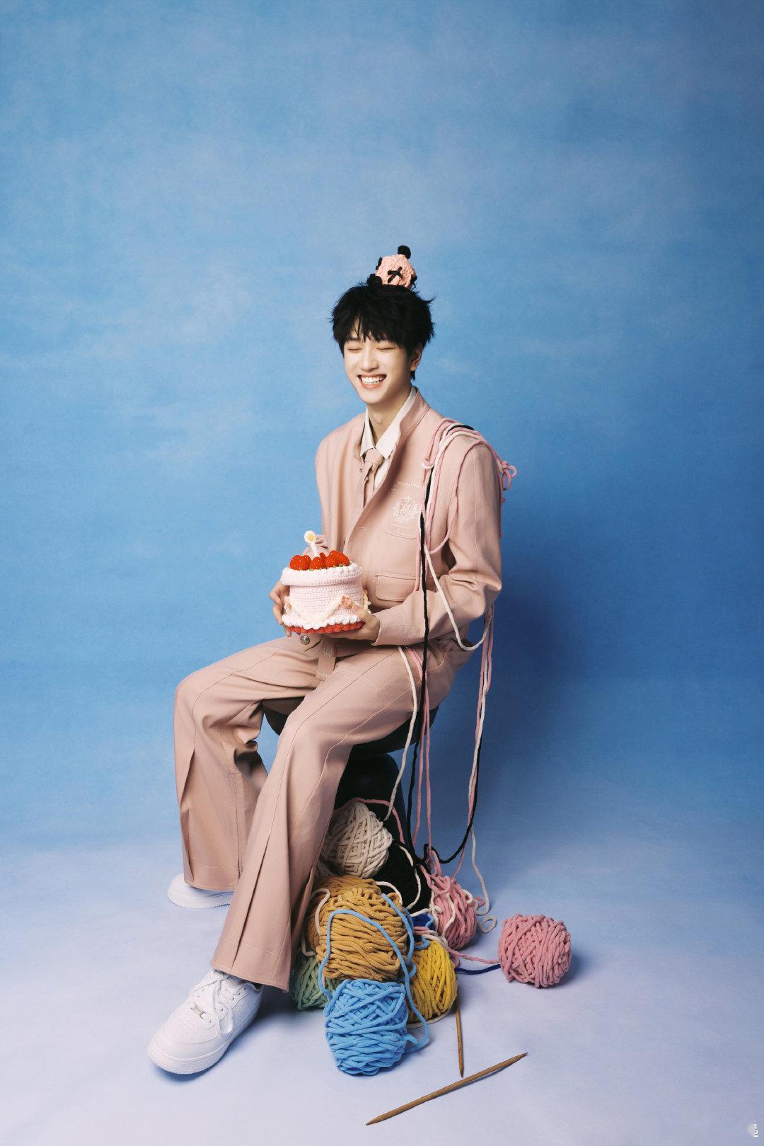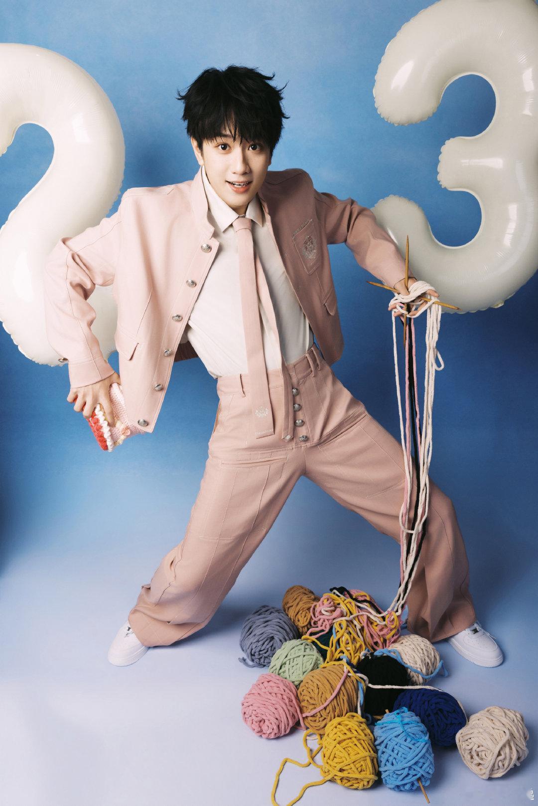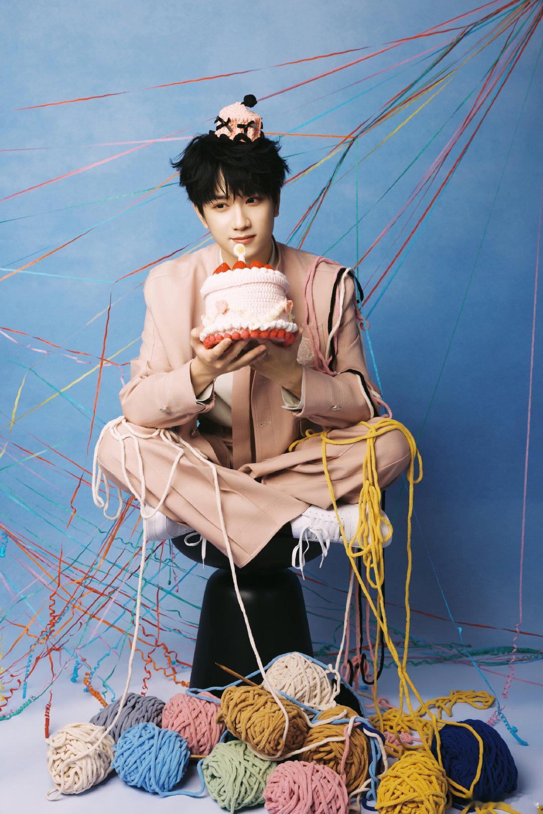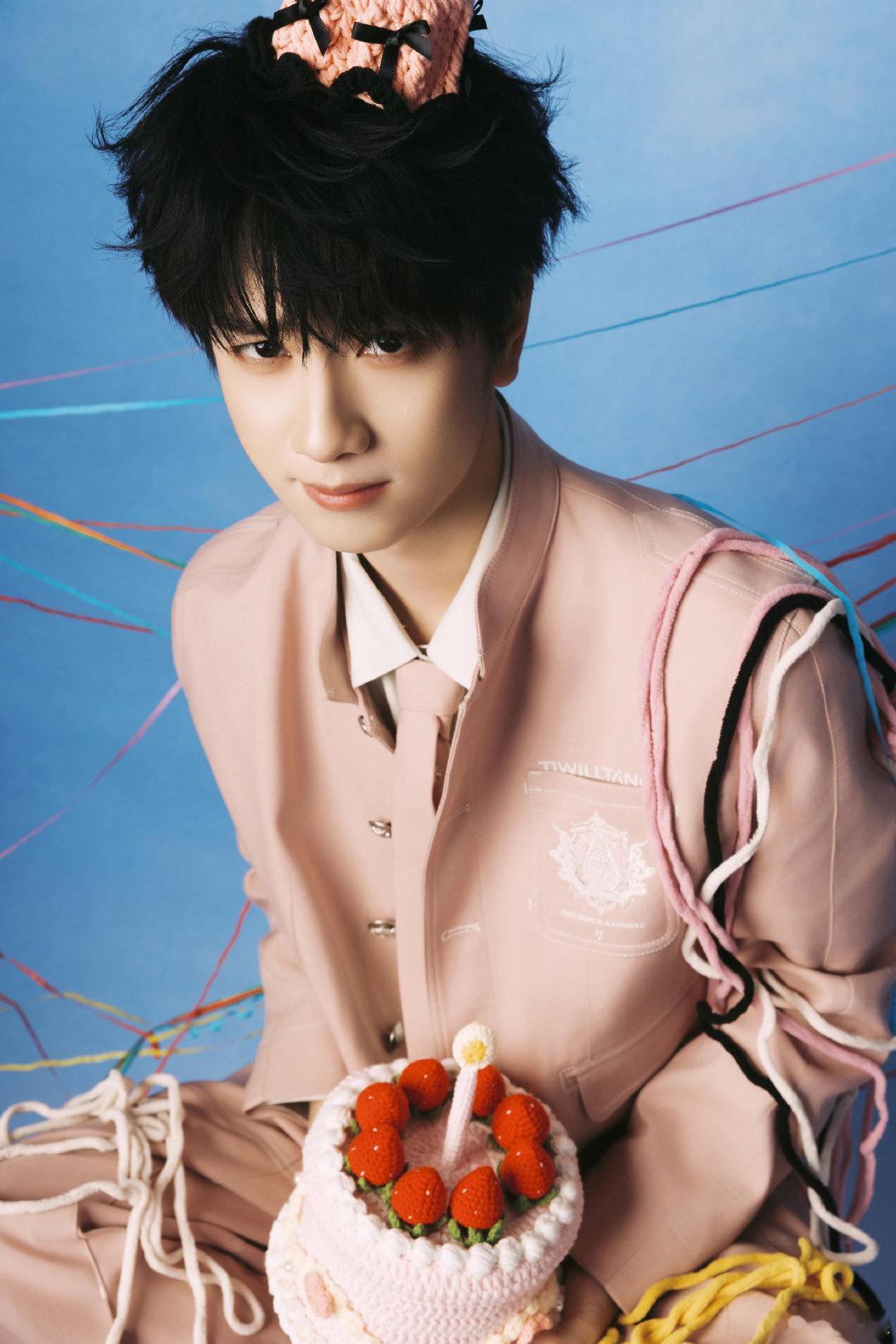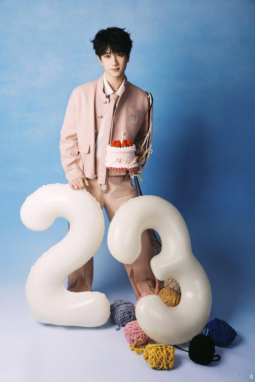 敖子逸23岁生日照 敖子逸23岁生日照,一身粉色西装头顶粉色小蛋糕,俏皮又帅气啊
