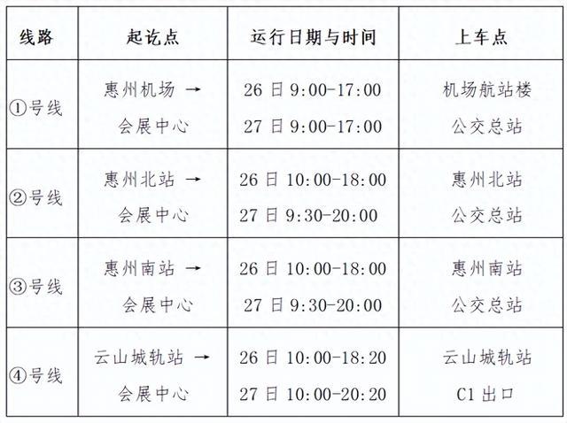 方式:参赛选手在惠州市范围内,仅需出示参赛号码布,即可免费乘坐所有公交线路。