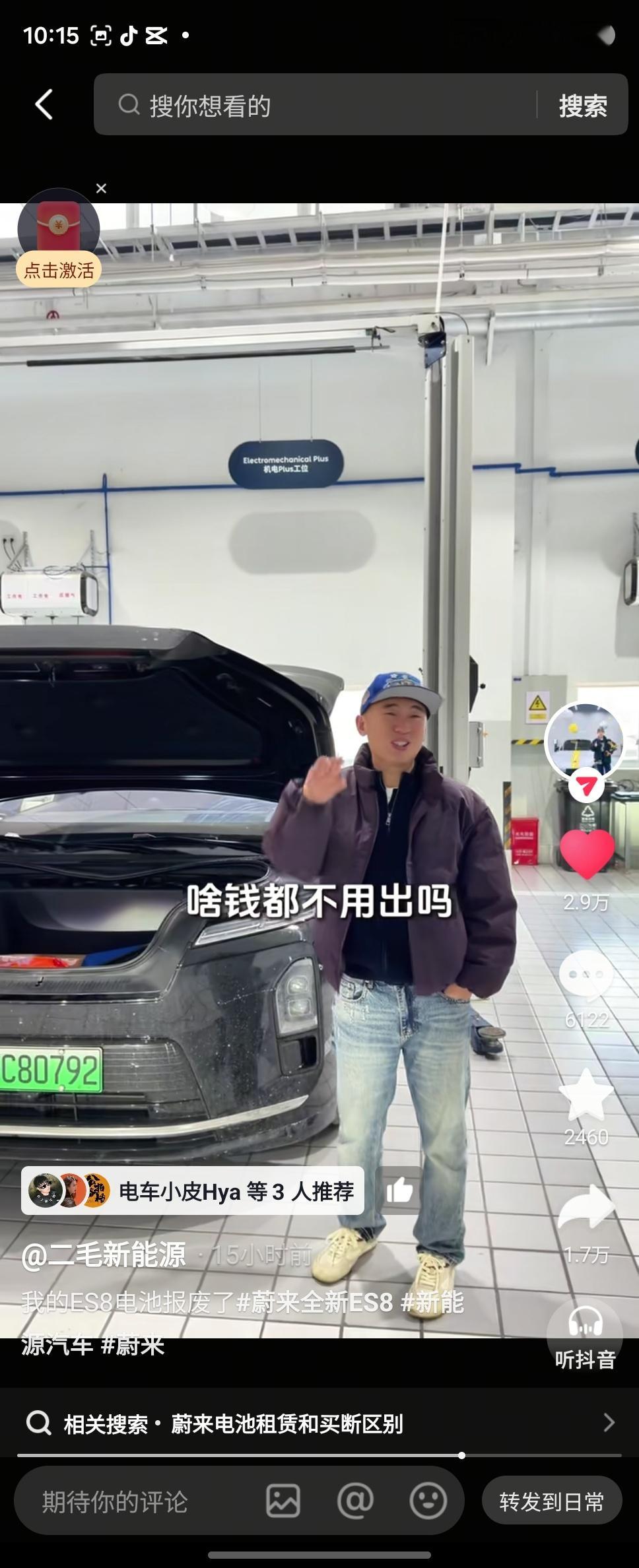 二毛老师新买的ES8高速电池被干废了,最后自己一分钱没花,免费换了一块新的电池。