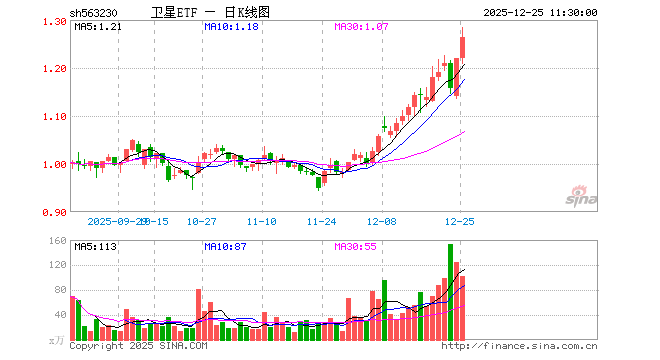 12月25日,截止午间收盘,卫星ETF(563230)涨3.69%,报1.264元,成交额1.28亿元。卫星ETF(563230)重仓股方面,航天电子截止午盘涨8.22%,华测导航涨0.85%,中国卫通涨2.24%,中国卫星涨6.29%,中科星图涨4.25%,北方导航涨1.87%,北斗星通涨3.61%,四维图新跌0.89%,臻镭科技涨16.11%,超图软件涨1.11%。