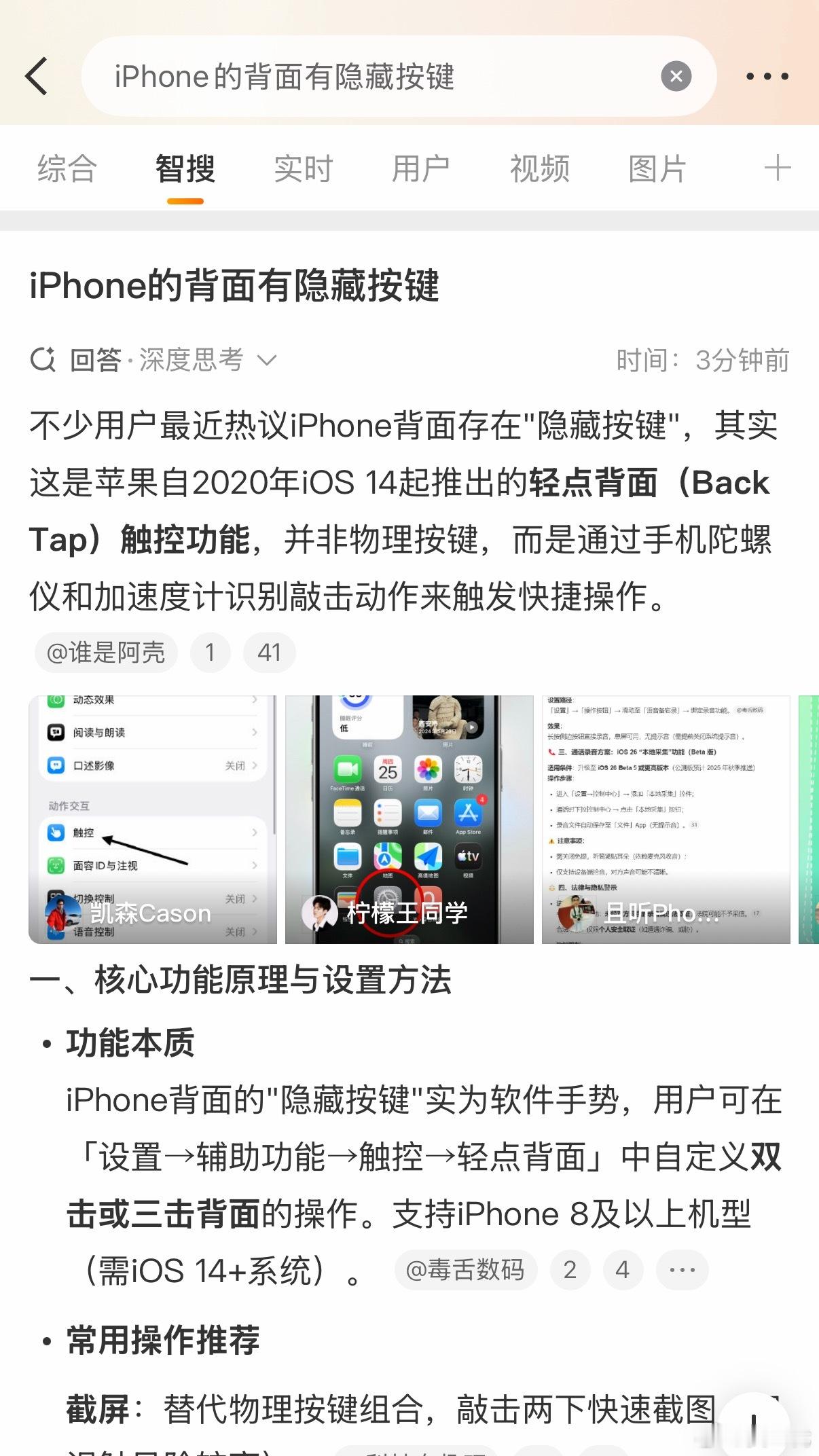 iPhone的背面有隐藏按键 热搜经常给我一种没见过世面的美,几年前功能现在还拿