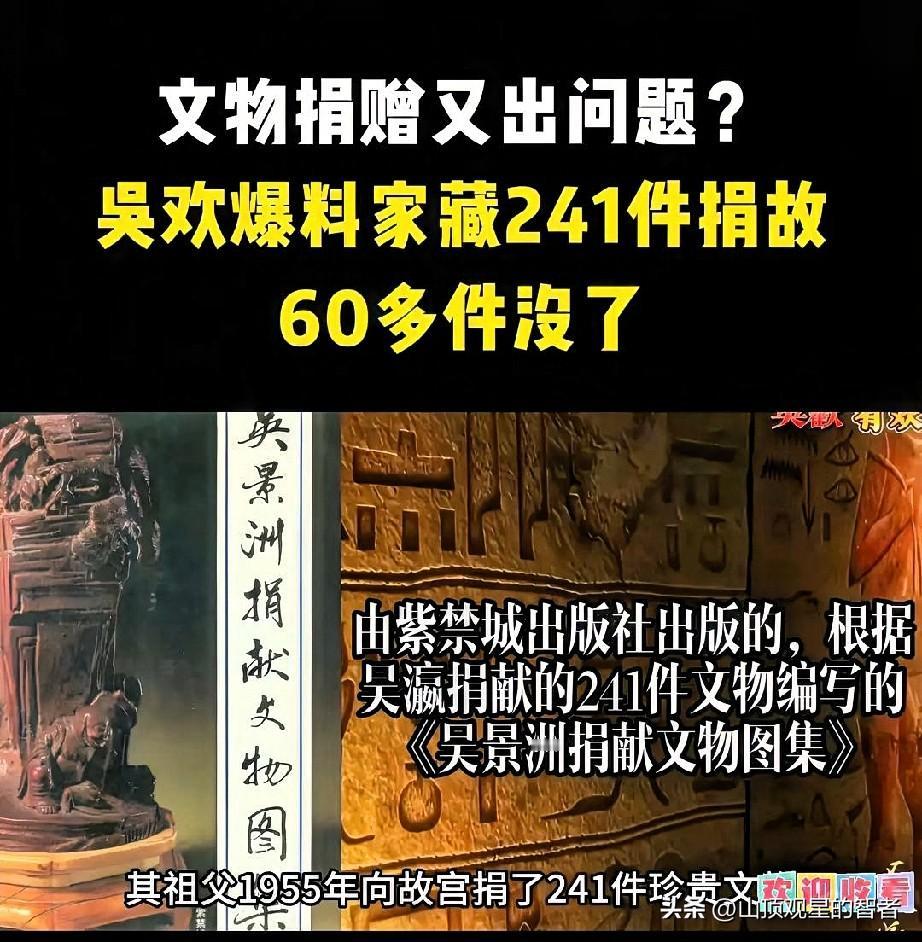 继南博之后,故宫这波操作更让人寒心!捐赠241件文物少了六七十件,回应竟如此敷衍 南博的热度还没完全凉透,故宫这边直接爆出个让全网炸锅的猛料! 故宫创始人吴瀛的孙子吴欢,实名喊话:自家1955年怀着一腔热忱,给故宫捐了足足241件宝贝。结果到80年代去核查的时候,当场傻眼——藏品凭空少了六七十件,最后就剩170多件! 要知道,故宫可是号称全世界安保最严的地方之一,层层守卫、科技防控,怎么看都不像是能丢文物的地方。可面对这么离谱的缺失,官方给出的解释居然就一句轻飘飘的“历史遗留问题”!这算什么?一句“遗留”就想把所有质疑都打发了? 当初人家是掏心掏肺支持文博事业,如今文物莫名“蒸发”,连个详实的说法都没有。难怪现在越来越多人,对给故宫捐赠文物这件事满心疑虑。 换作是你,还敢把家里的珍贵藏品捐给博物馆吗?