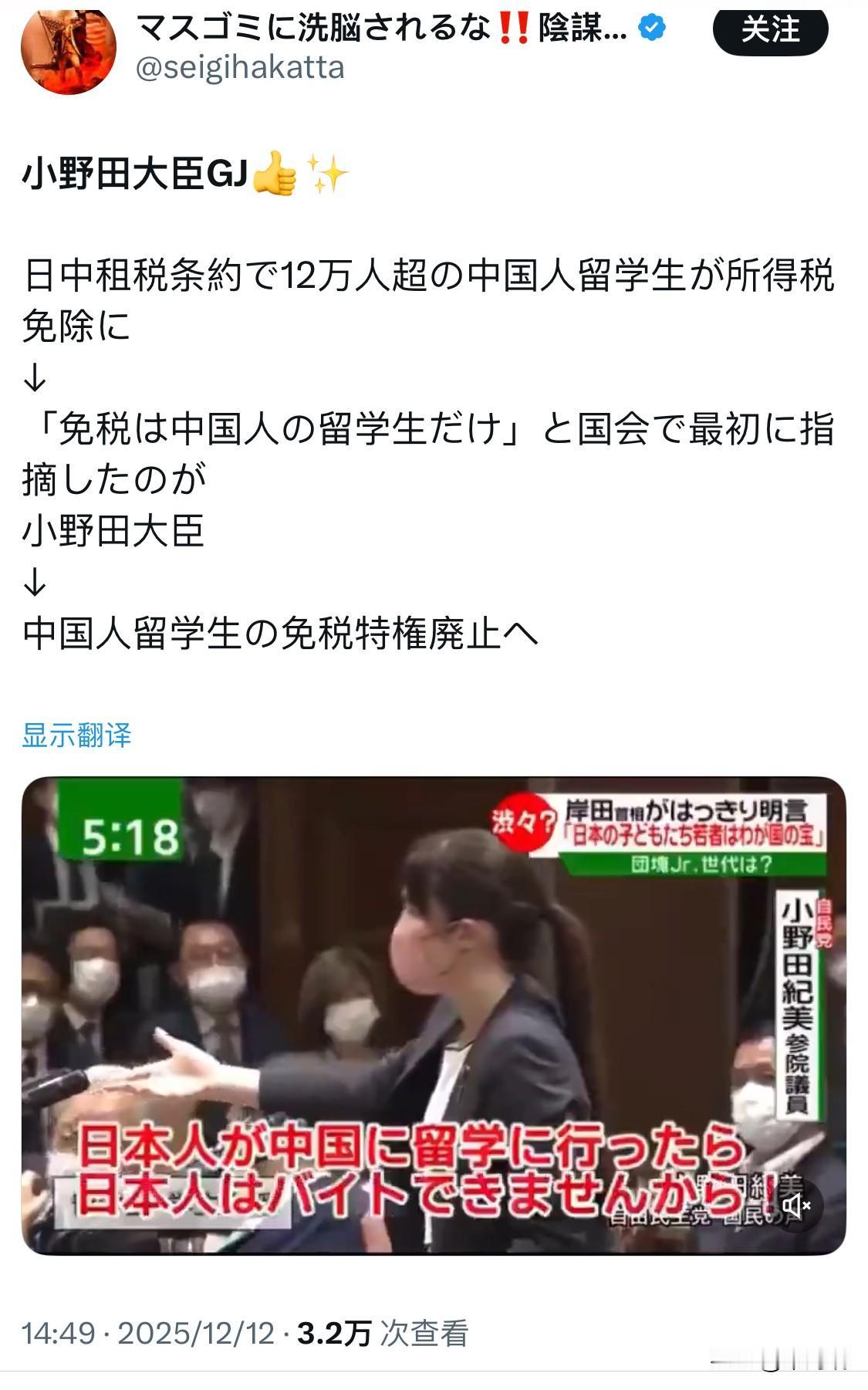日本高市早苗内阁将重新审议日中税收协定,取消中国留学生勤工俭学无限额所得税豁免特