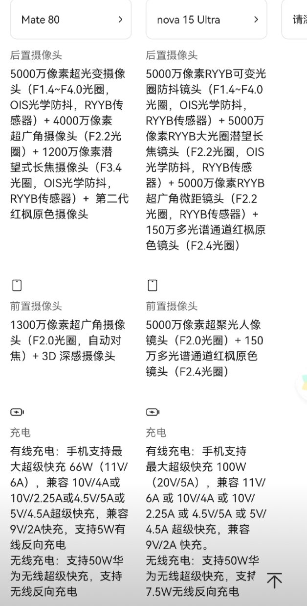 Nova15Ultra的价格已经和Mate80标准版有部分重叠了,这下又该选择困难症了。Nova15Ultra虽然比Mate80标准版稍微便宜几百块钱,但有些配置却比Mate80还高,例如100W快充,6500毫安电池,双红枫影像,在拍照也略胜一筹,但同时也少了3D人脸识别等。综合对比下来,各有所长,这下又该面临鸡头和凤尾的选择了。