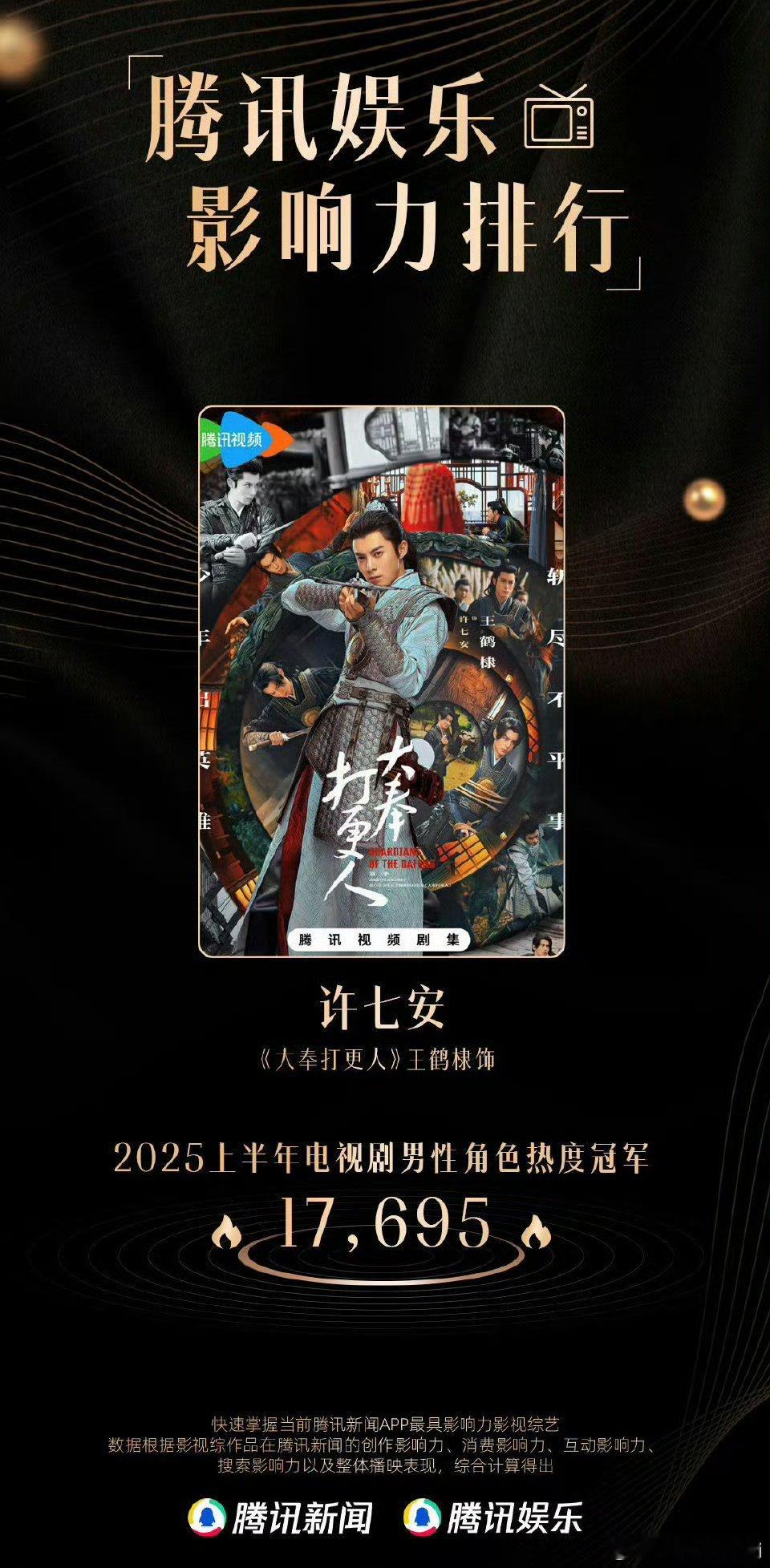 王鹤棣《大奉打更人》2025人气口碑剧TOP! 恭喜应得的
