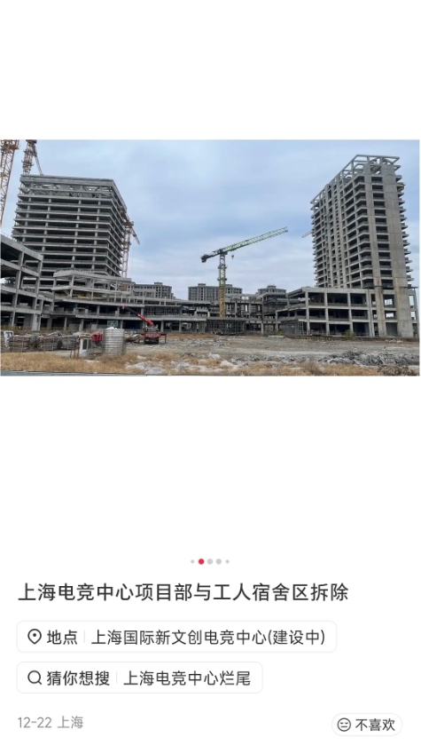 直播吧12月25日讯今日有网友爆料上海电竞中心工程烂尾,项目部与工人宿舍现已全部拆除。而上海电竞中心项目的承建单位正是EDG所属的超竞集团,原本将作为EDG俱乐部旗下项目未来的主场使用。
