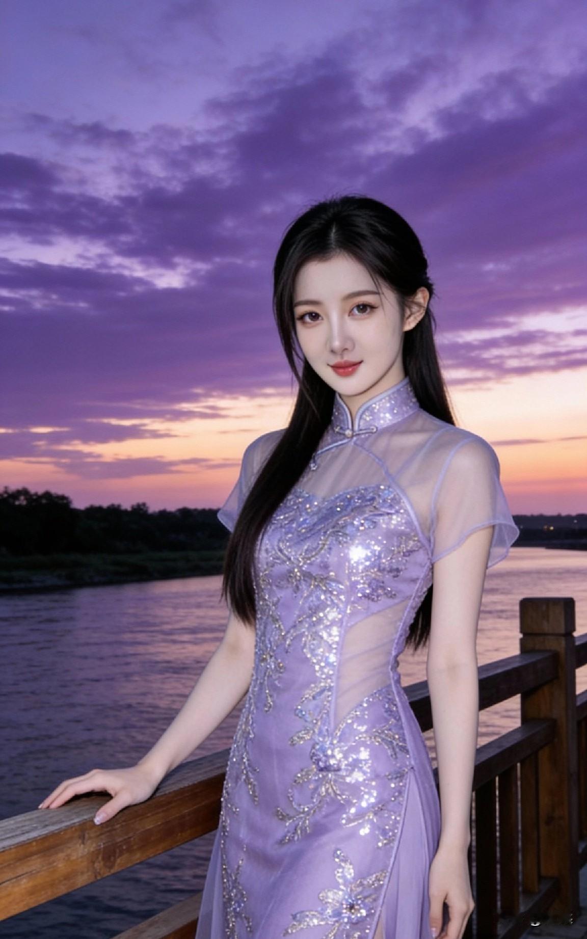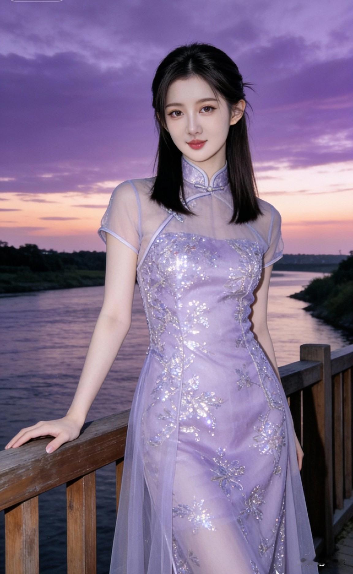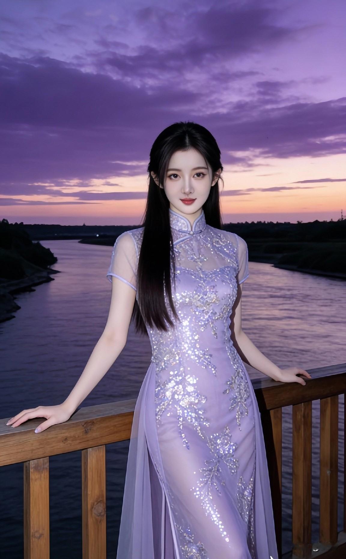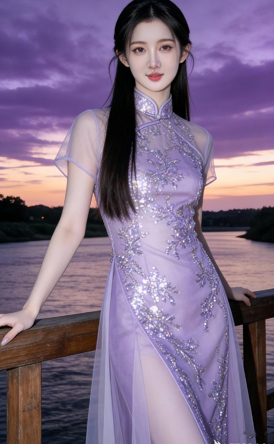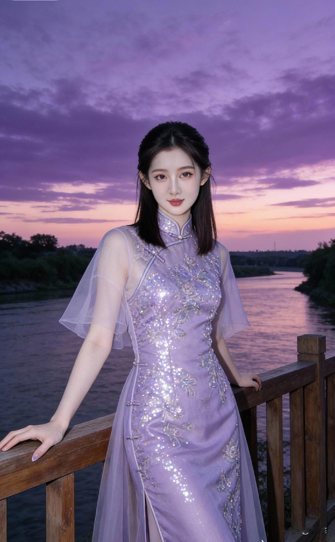 梦幻紫色晚霞,古典旗袍美人倚栏赏景每日搭配分享·时尚穿搭 穿旗袍拍照有多美 什么样的穿搭可以成为气质女神?