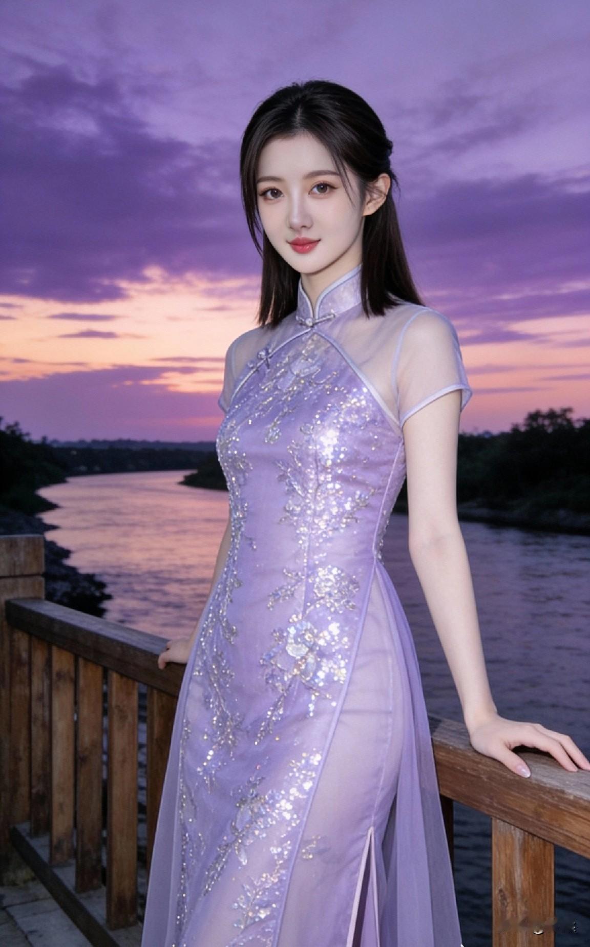 梦幻紫色晚霞,古典旗袍美人倚栏赏景每日搭配分享·时尚穿搭 穿旗袍拍照有多美 什么