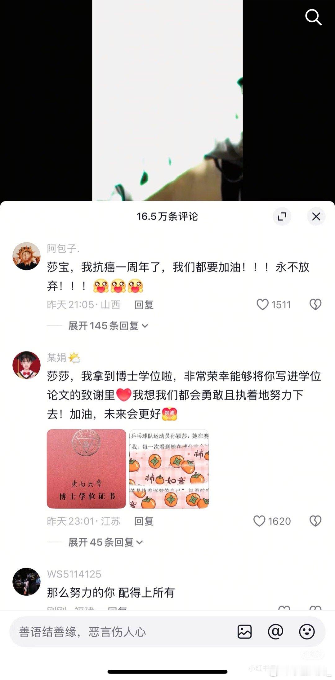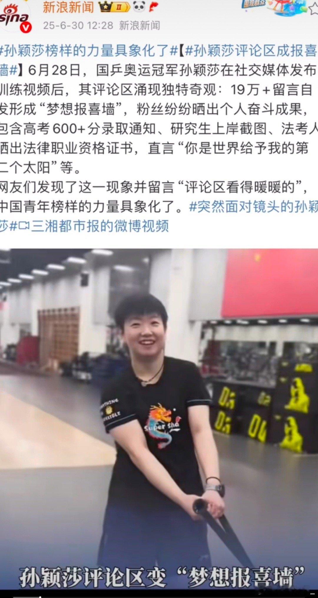孙颖莎的评论区成了报喜墙不限圈唯一顶流大top就是这样文娱体唯一破6亿大top就是这样真人头真国民度大top就是这样这就是榜样的力量!全国人民都以莎莎为榜样,自己的一面镜子,自己的一面功劳墙!看着莎莎这样的莎莎,我们太骄傲了!体坛高能时刻体育大赏全网热点共创计划