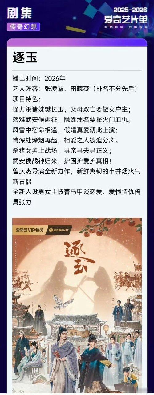 逐玉2026年播出 逐玉2026开年大剧 逐玉2026年播出!