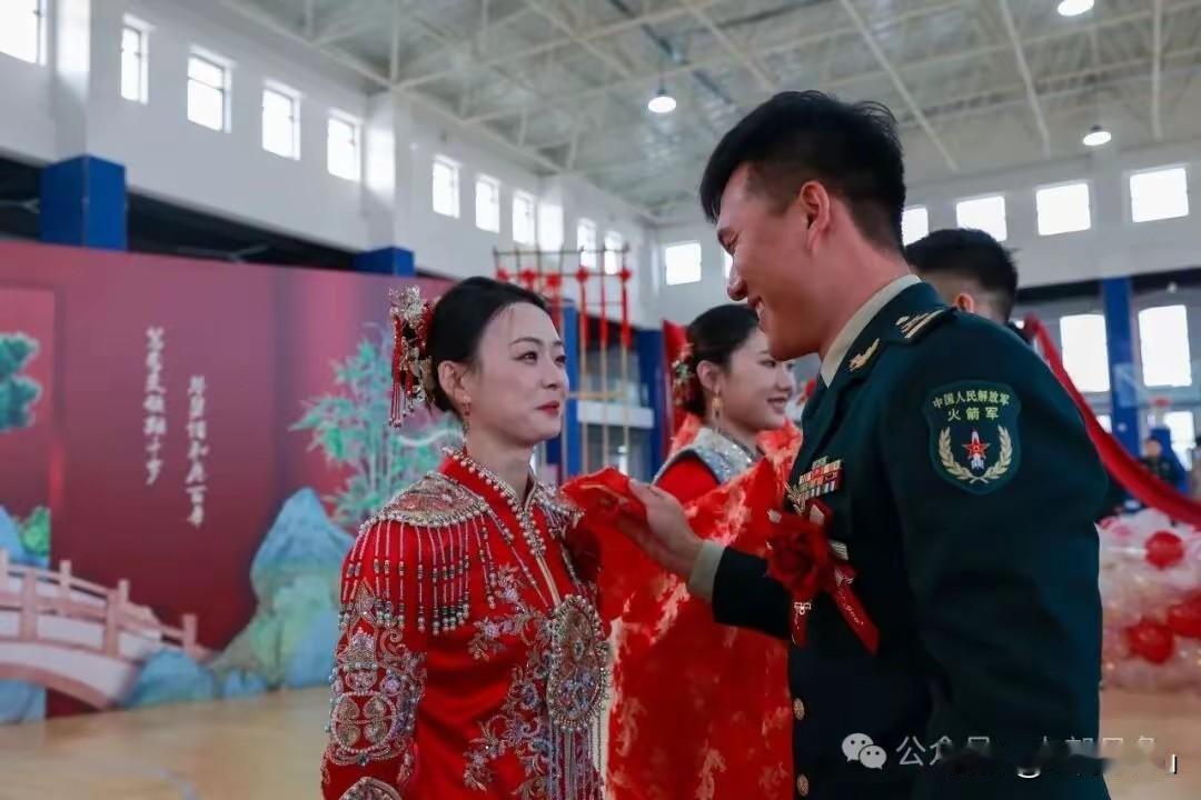 火箭军某部30多对新人举办 集体婚礼 火箭军某部举办“戎装之约·同心偕老”集体婚礼,30多对新人以战车为媒、军旗为证,经趣味游戏闯关迎亲,领导现场证婚致辞,新人将个人幸福融入强军梦想,共同肩负守护山河建设国防重任。