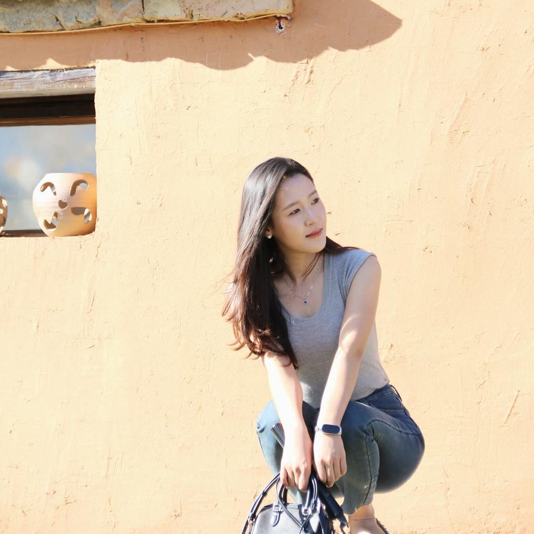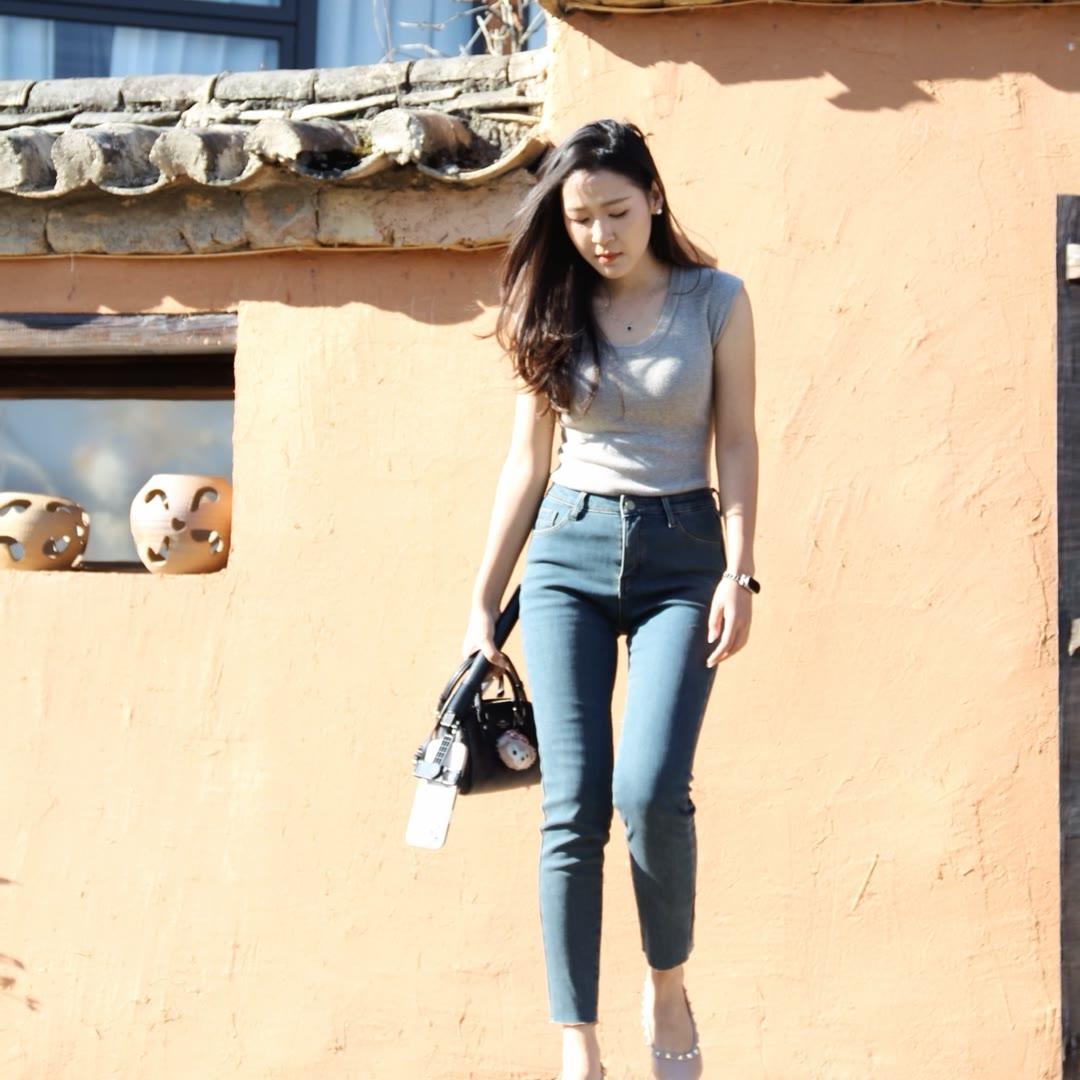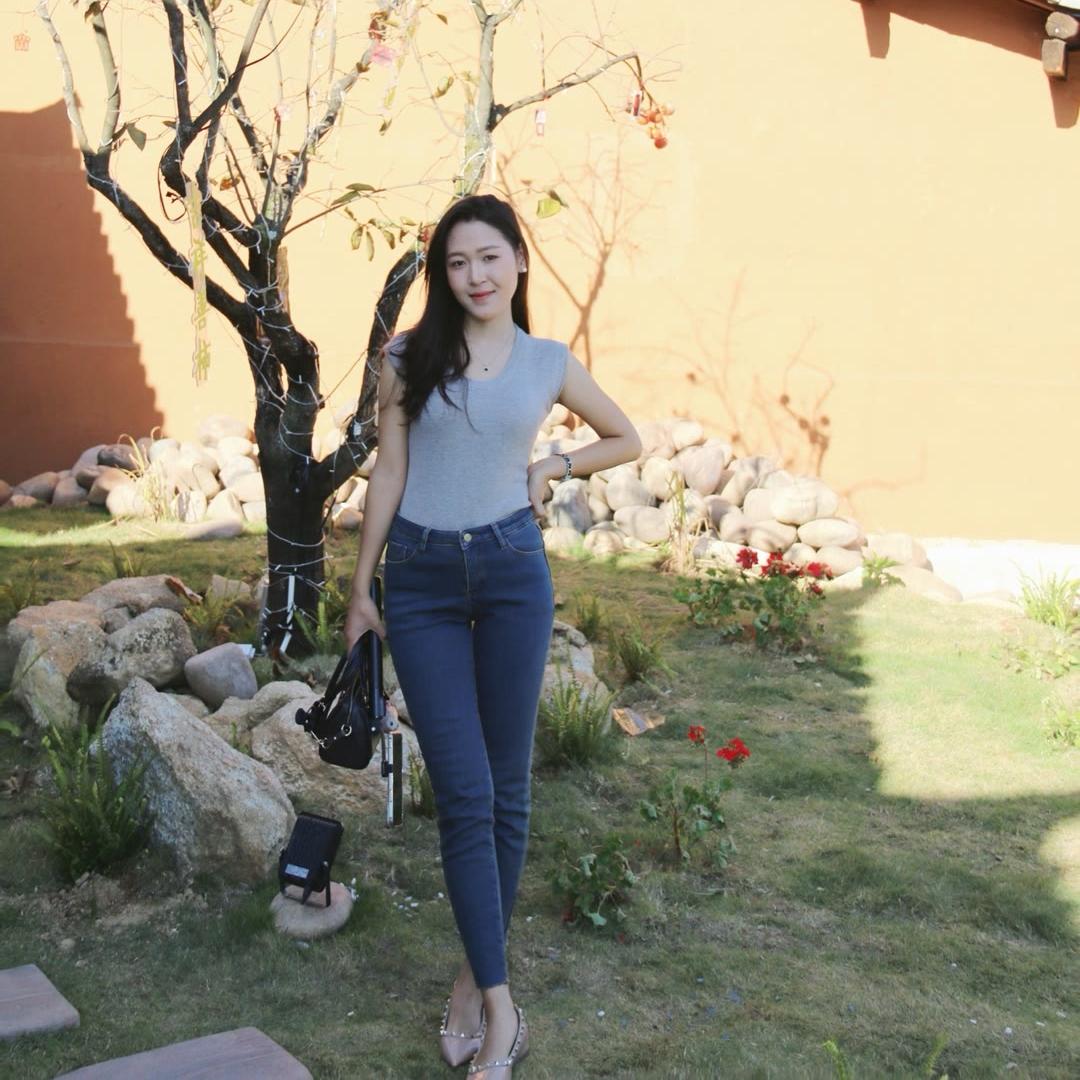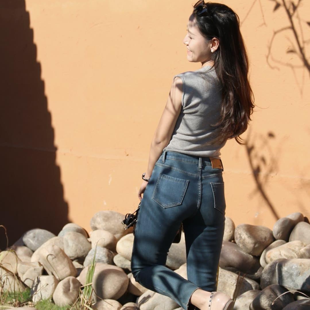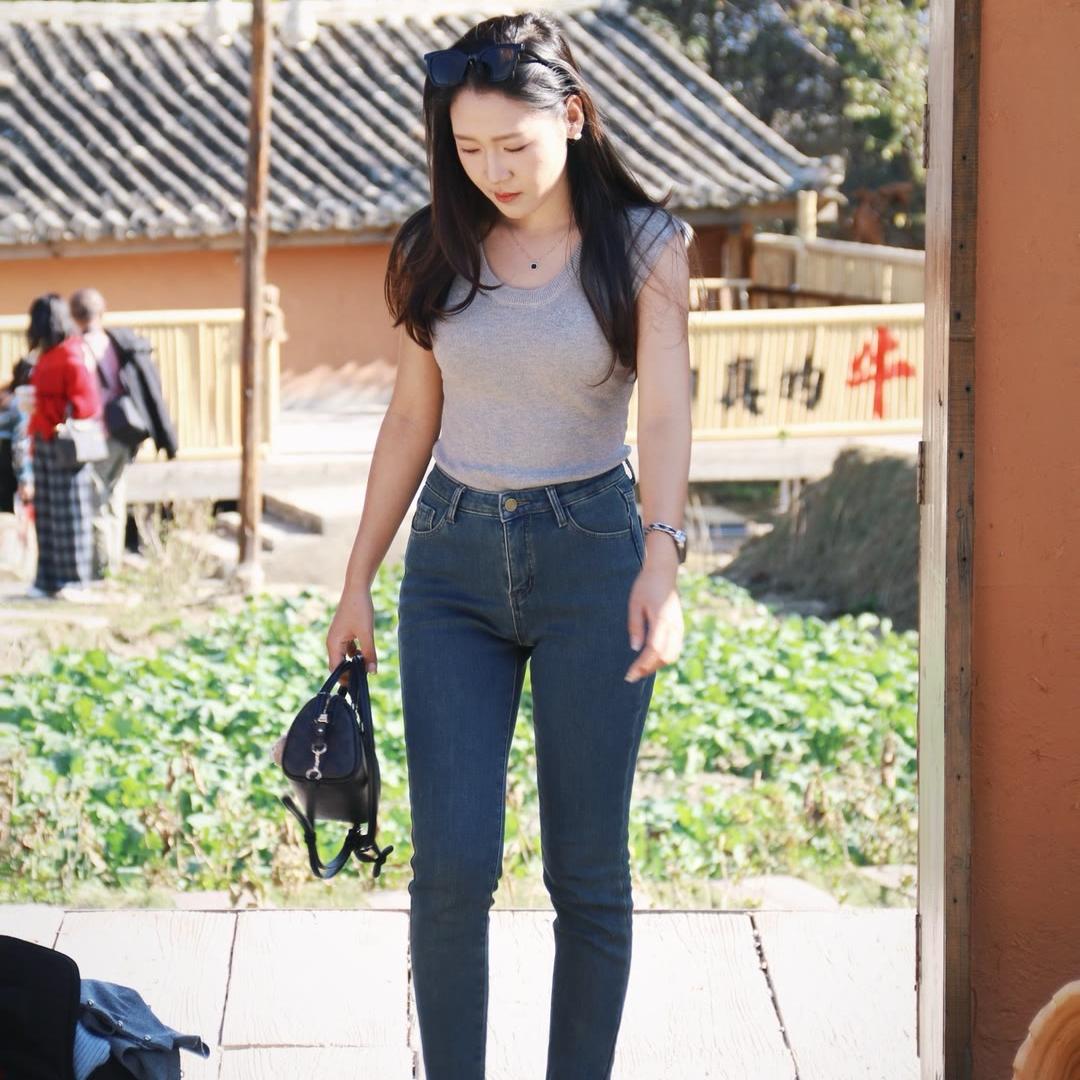 夏天在自然公园里,穿白色背心搭配黄色牛仔裤,妥妥就是甜美少女本女。白色背心清爽又