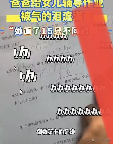 辅导作业气哭爹,这届娃脑洞太绝了! 刚刷到一男子辅导闺女写作业,直接给气哭了!媳妇一问才知道,闺女做题非要画15只鸡,还一只一个样,愣是不带重样的!他哭笑不得吐槽:这要是100只鸡,家里纸都得被画光,摞起来能当小板凳! 不嫌多事的网友留言更是戳心了! 有人说这娃想象力爆棚,画得没毛病;有人劝老哥,别逼孩子死读书,这明显是画画的好苗子! 说真的 现在的娃脑回路太清奇 咱当家长的真别用成人思维框住他们! 换个角度看,这闺女看着是“添乱”,其实是在认真理解题目,还顺手发挥了天赋,多难得! 你们家娃写作业时 有没有闹出过啥哭笑不得的糗事?