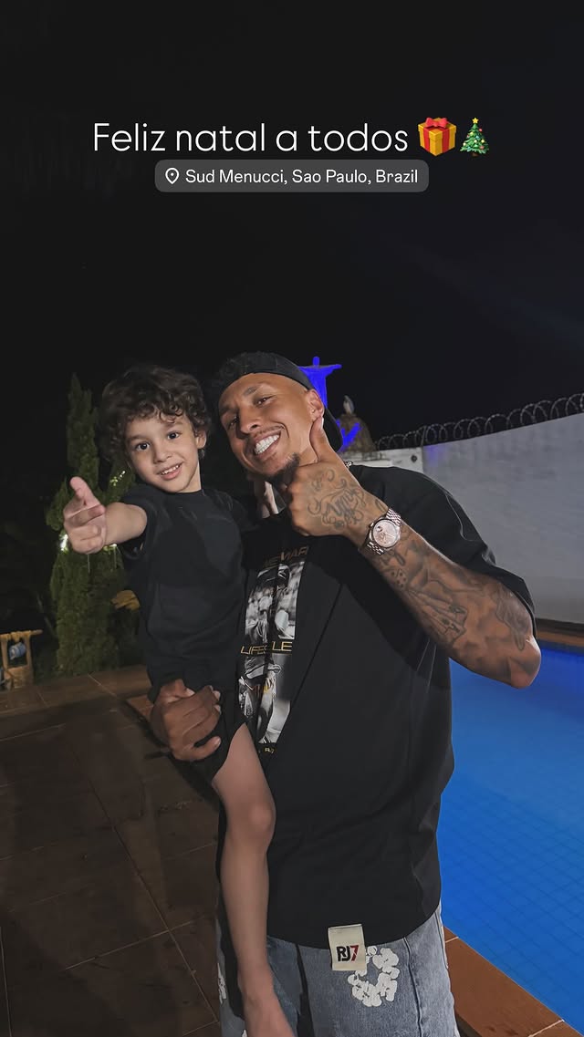 同时在平安夜,他也晒出了与自己儿子共同祝大家圣诞快乐的照片。