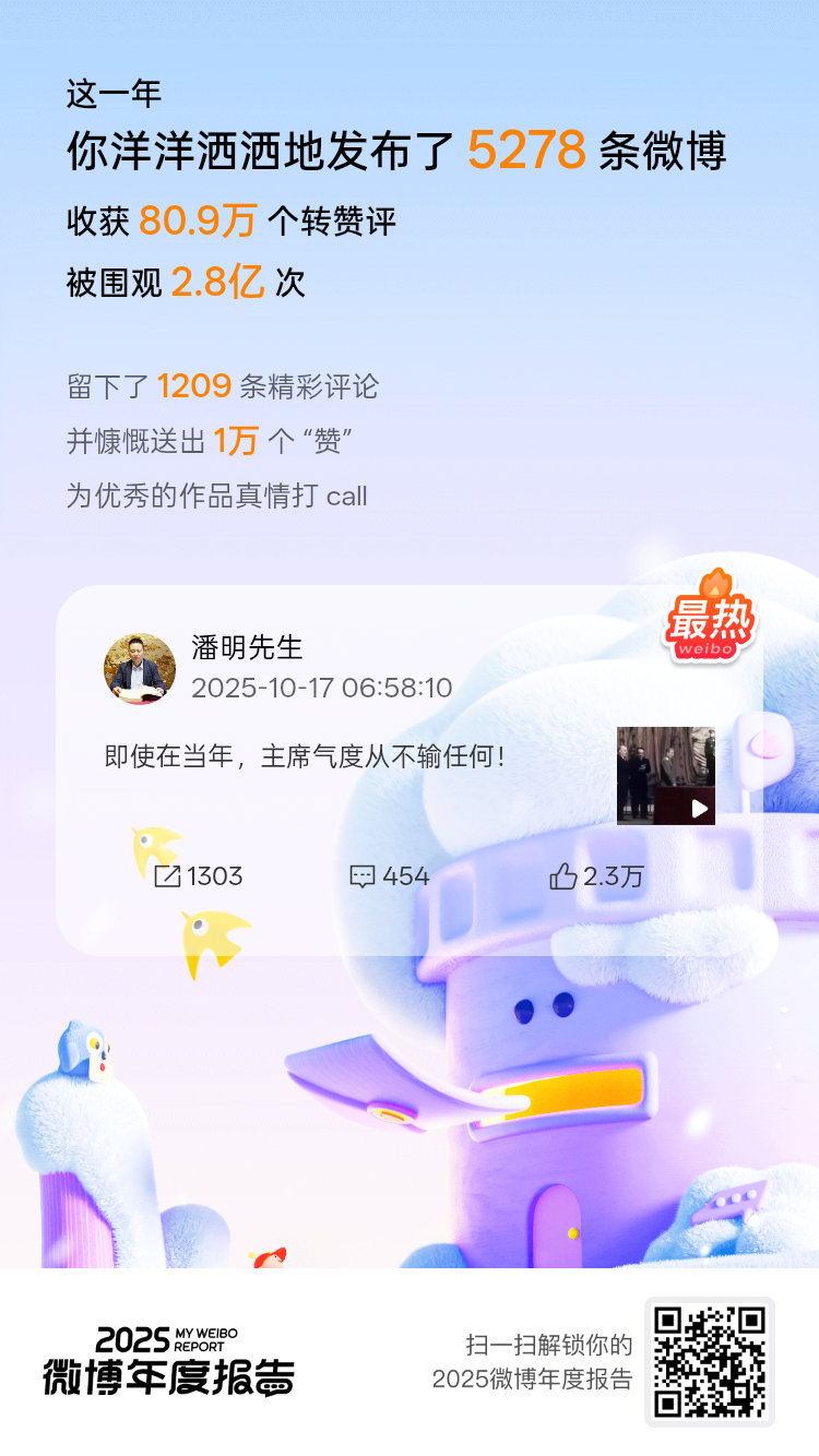 微博年度报告,显示我“365天每日活跃”,所谓的“全勤”勋章,是时间黑洞的铁证,我这一年在无意识的被吞噬,虚度光阴的我已经被淹没。播报20252025微博年度报告 微博年度报告微博之夜