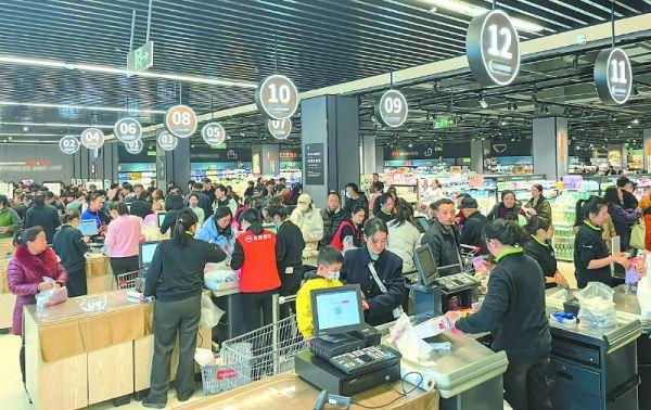 南充新闻网讯(南充市融媒体中心记者梁洪源文/图)元旦、春节双节将至,南充各大超市迎来购物高峰。12月24日,记者在顺庆区白土坝某大型超市内看到,各个区域均人潮涌动,收银区一片繁忙,呈现出浓厚的节日氛围。