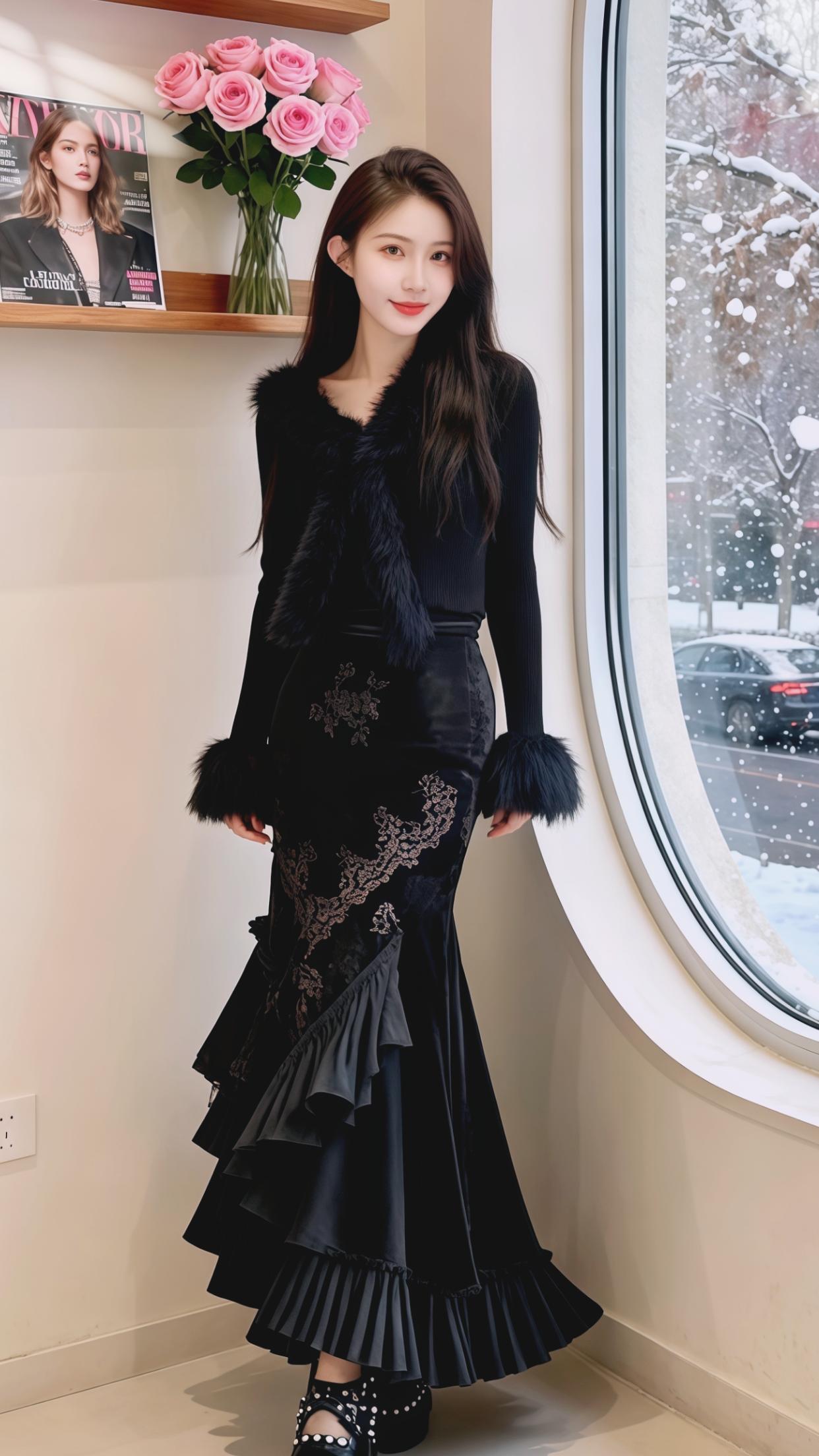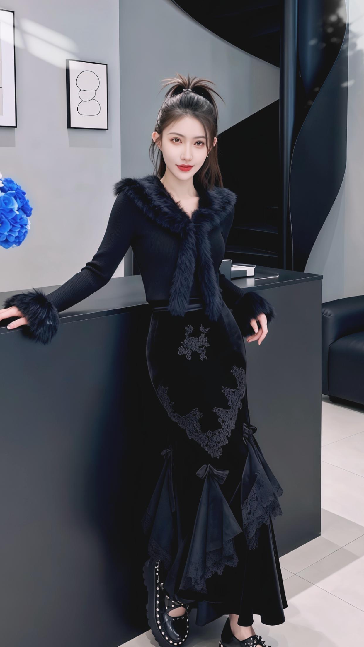 穿搭 高级感 鱼尾裙 半身裙 黑色系