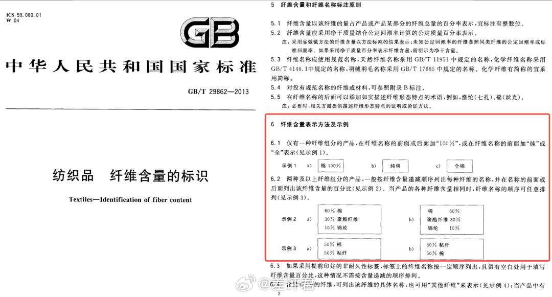 #100%羊毛其实不是羊毛# 请听题,这几种标注,哪个是真羊毛:A. 100% 高支羊毛   B. 棉羊毛 100%   C. 100%澳洲超细羊毛。答案是:都不是。。。水洗标是一个推荐性的标准,不是强制的,商家在上面填写的内容存在发挥空间。市场上不规范的水洗标,数不胜数。而且规范 ≠ 真实,水洗标的造假成本极低。作为普通消费者,你很难去辨别出成分符合还是不符合,后续的维权自然无从说起。根据国标,面料成分或者说纤维成分的固定格式为:占比百分比 + 纤维名称。以羊毛为例,合乎规范写法应该是这四种:100% 绵羊毛、绵羊毛 100%、纯绵羊毛、全绵羊毛。以纯棉为例,合乎规范写法应该是这四种:100% 棉、棉 100%、纯棉、全棉。如果由多种组分构成,那么应该按照含量递减顺序列出每种纤维的名称和百分比。纤维名称也有对应的属名规范。羊毛不能标注羊毛,而是绵羊毛,羊绒也不能标注羊绒,应该标山羊绒。像高支羊毛、超细羊毛、棉羊毛,更是国标里没有的名词。B站知名up主是一位纺织品化学工程师,他告诉差评君:“ 水洗标不能帮助你选到高品质的衣服,但绝对能帮你避免很多劣质衣服 ”。“你可以看主流的大品牌,他们在水洗标、吊牌上都是很规范的,即便是平价的大品牌也是如此 ”。如果连水洗标都特别简陋,甚至漏洞百出,那指望他们在面料这种难以辨别的地方下功夫应该更难。为什么标签乱象屡禁不止?一个服装行业的老师傅表示,校正这个事情的成本比被发现了处罚的成本可能还要高一些 。很多小厂采购面料时,面料商说什么他就打什么,根本不去送检。万一被职业打假人盯上了,赔点钱了事;要是没被发现,省下的就是纯利润。其实现代纺织技术下,适量的腈纶或锦纶反而能让羊毛袜更耐磨、不容易滑丝掉跟。我们真正反感的,从来不是“混纺”,而是那种一边拿着化纤冒充天然,一边把消费者当成傻子收割的傲慢。