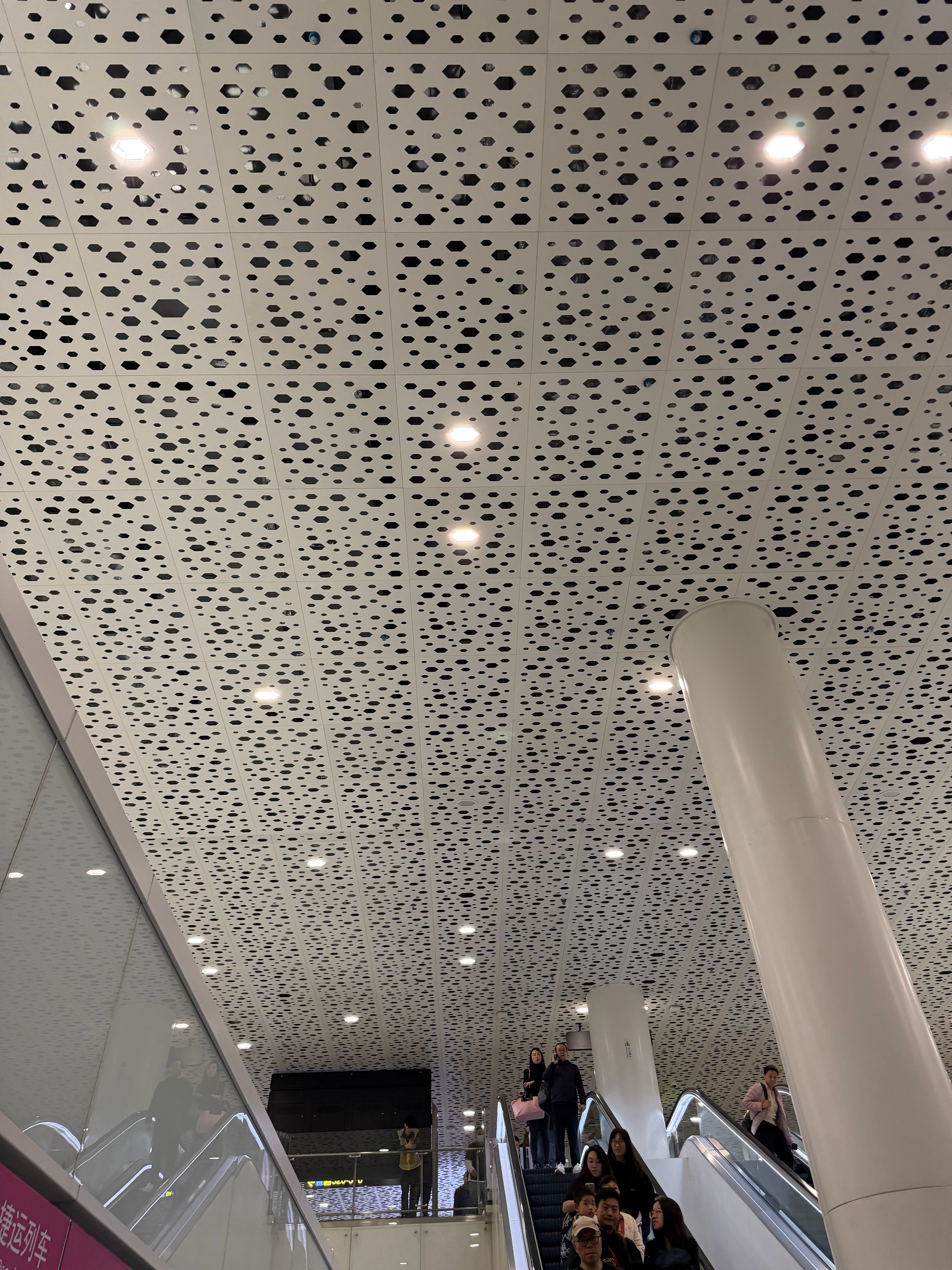 深圳宝安机场的天花板,是蜂巢设计,会让密集恐惧症的朋友受不了,但是图3 是机场的