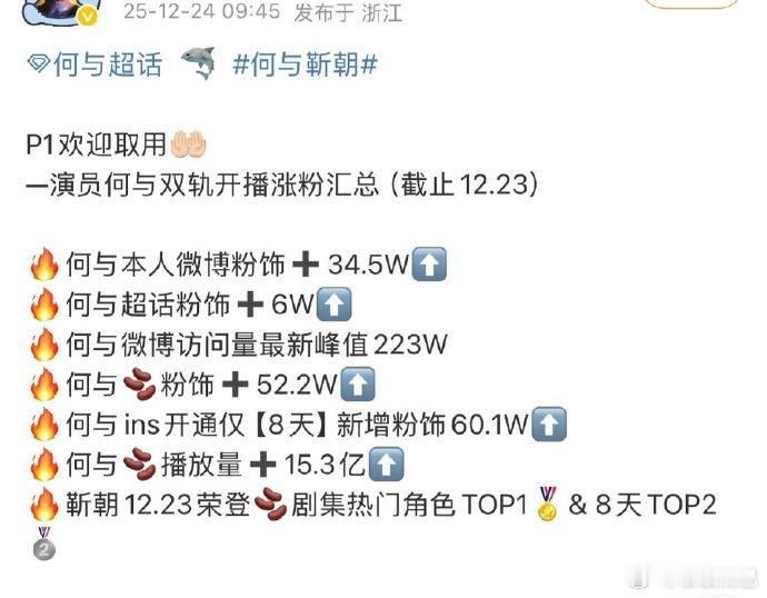 何与双轨有效播戏全平台涨粉,微博涨粉38.3w,🫘涨粉59.4w,包括新开的ins涨粉70w,海外热度也是一骑绝尘,超话也直接升到金二了
