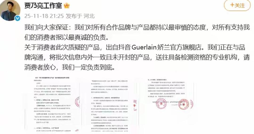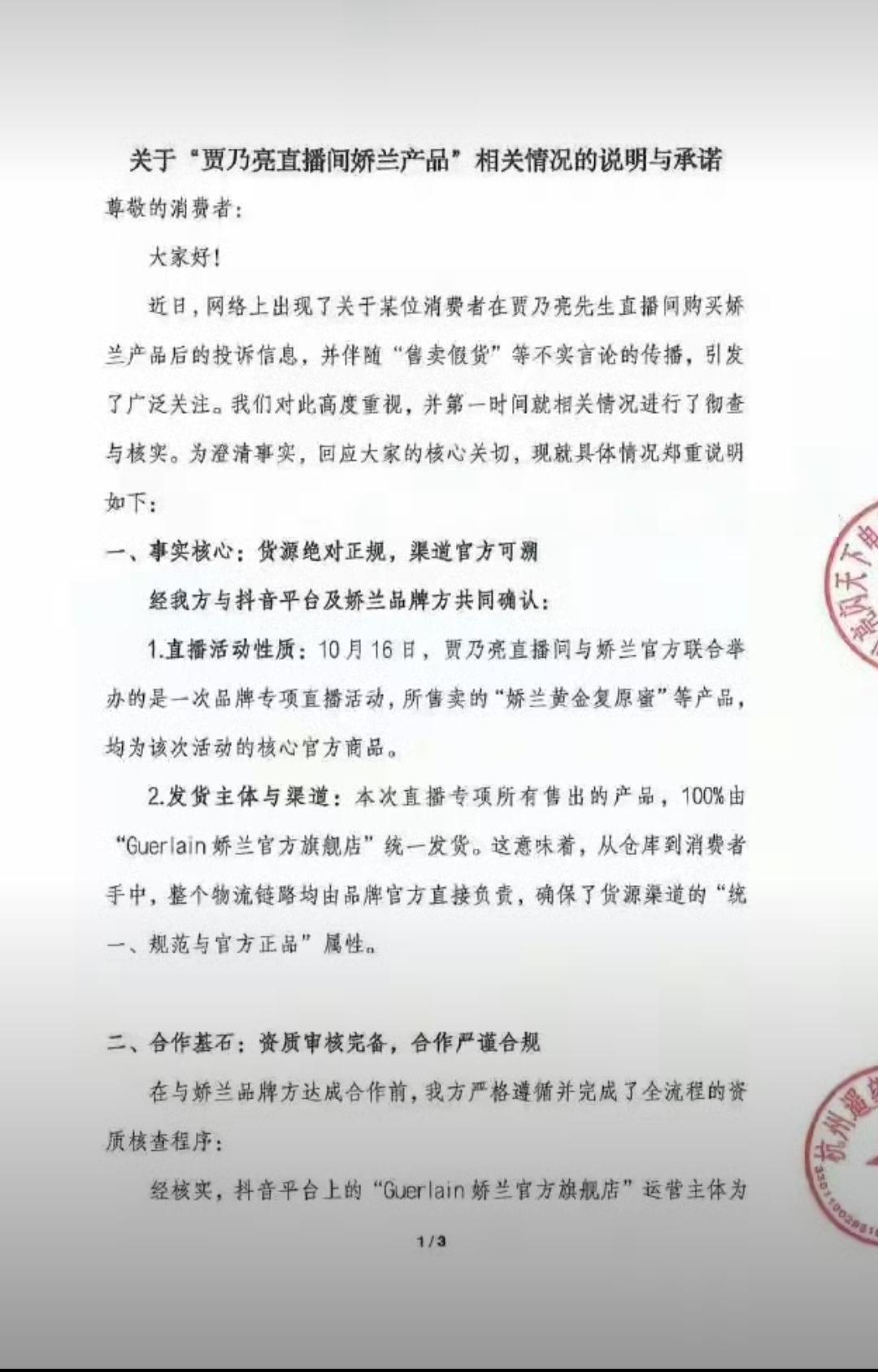 双11闹得沸沸扬扬的贾乃亮娇兰售假瓜,居然是场大乌龙!消费者花7000元买的复原蜜,说包装廉价、上脸刺痛,还晒出“伪造产品”检测报告,全网都以为主播翻车了。 结果反转来得猝不及防:娇兰官方实锤是品牌直发,抖音核查没毛病,权威媒体送检更打脸——直播间产品和专柜成分相似度超98%!原来出具假货报告的机构,连检测资质都没有,纯属外观比对瞎忽悠。 这波是贾乃亮被三无机构坑惨,网友笑称“维权没找对门路,差点冤枉好人”!你网购遇到过这种“睁眼说瞎话”的检测吗?