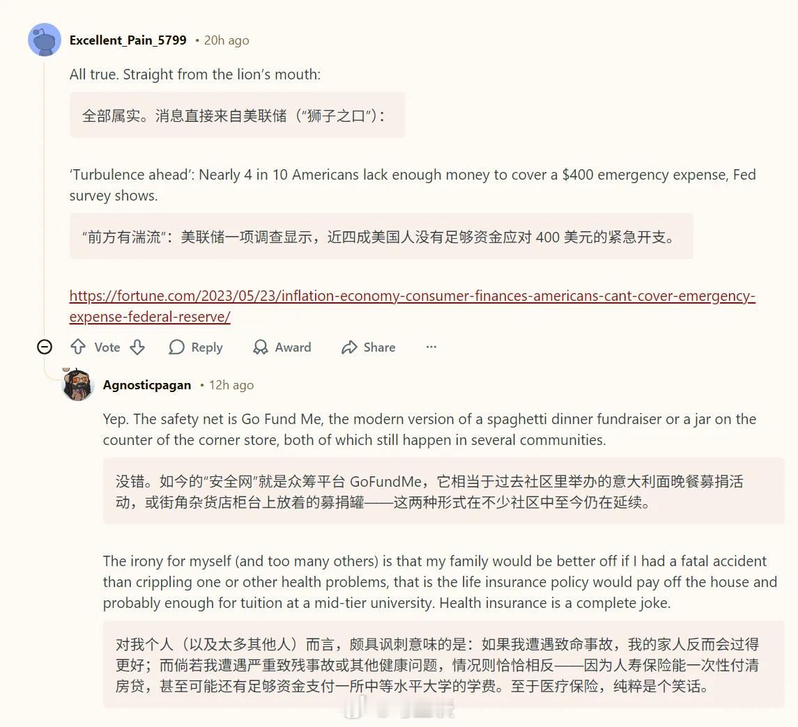 关于斩杀线概念,美国reddit上网友说是真的。其实看人口这个最重要的指标就能知道:美国出生率不低,每年还这么多移民,但人口总数却不怎么增长,人去哪里了?