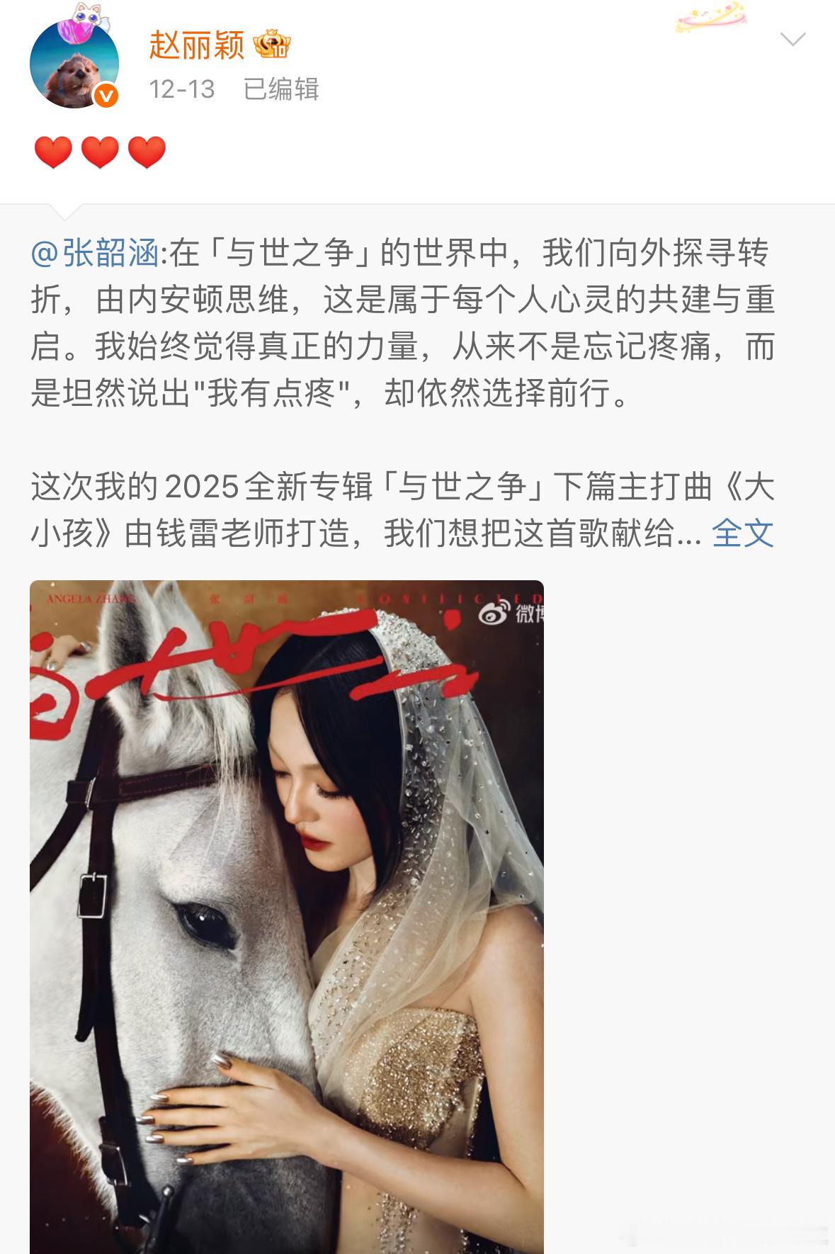 赵丽颖掉金v了上一次营业时间是12.13帮张韶涵转发