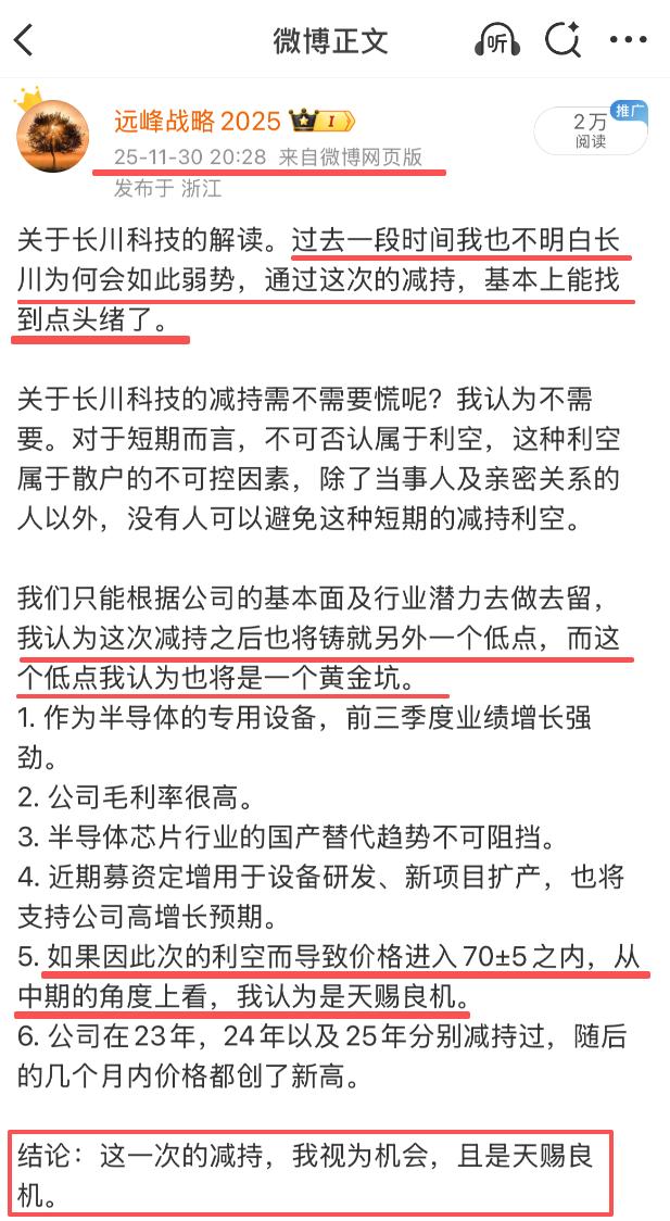 长川科技今天终于再次刷新了历史新高。在半导体芯片整个产业链里,我对这个公司的偏爱从来不遮掩,即便长川在11月30日发布大幅减持公告那天,我依旧认为这将是一个黄金坑,且是个天赐良机的黄金坑,第二天开盘到今天,历时19个交易日,从调整的最低点,到现在的历史新高,长川没有辜负我的信任与厚望。 这里还有人坚守在长川的么,今天是个好日子,一个锅里抡饭勺的出来吼一声我看看不离不弃的多不多。