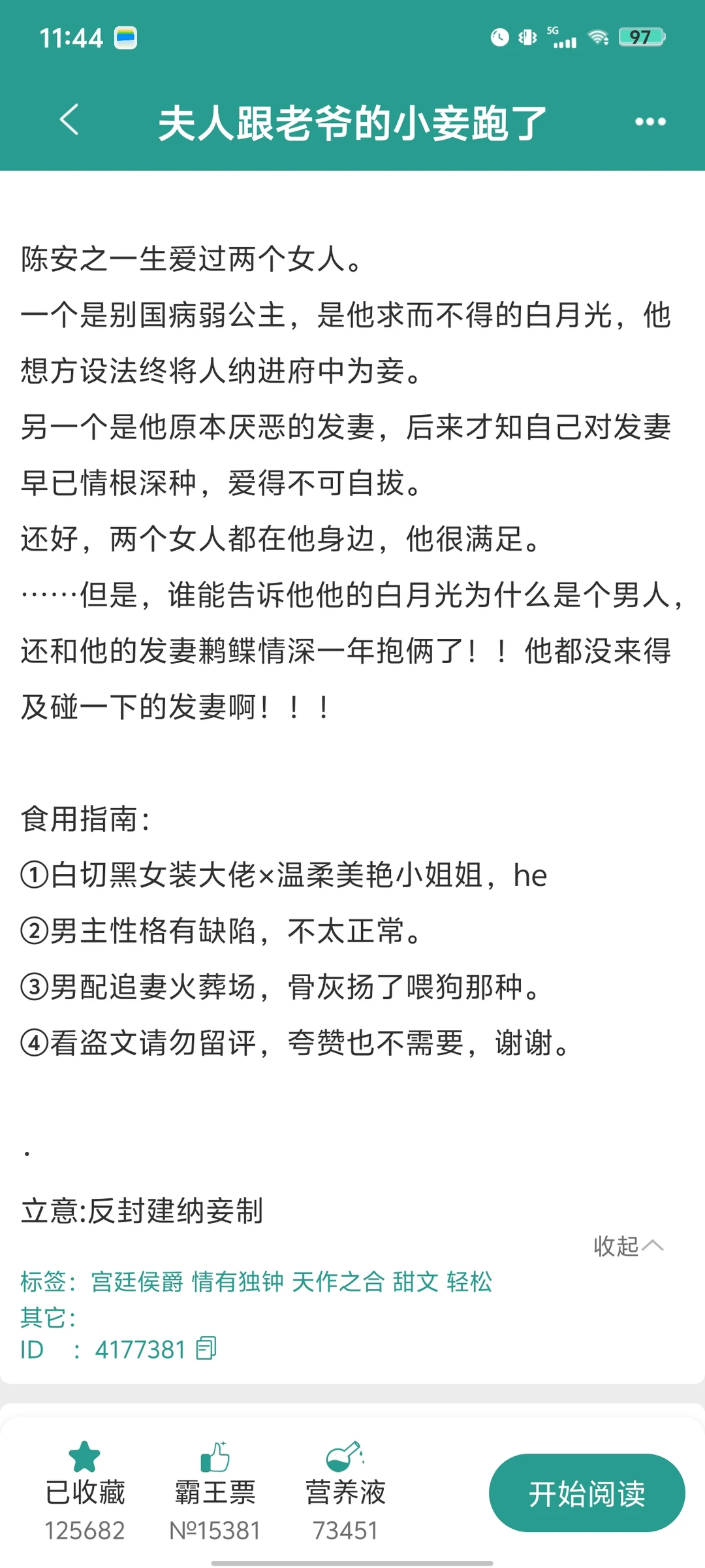 《夫人跟老爷的小妾跑了》by绿药 21年完结的文,一共156章,纯bg文 温柔洒脱落魄贵女vs腹黑疯批绝色大佬 男扮女装,男二追妻地狱场,古言甜宠文