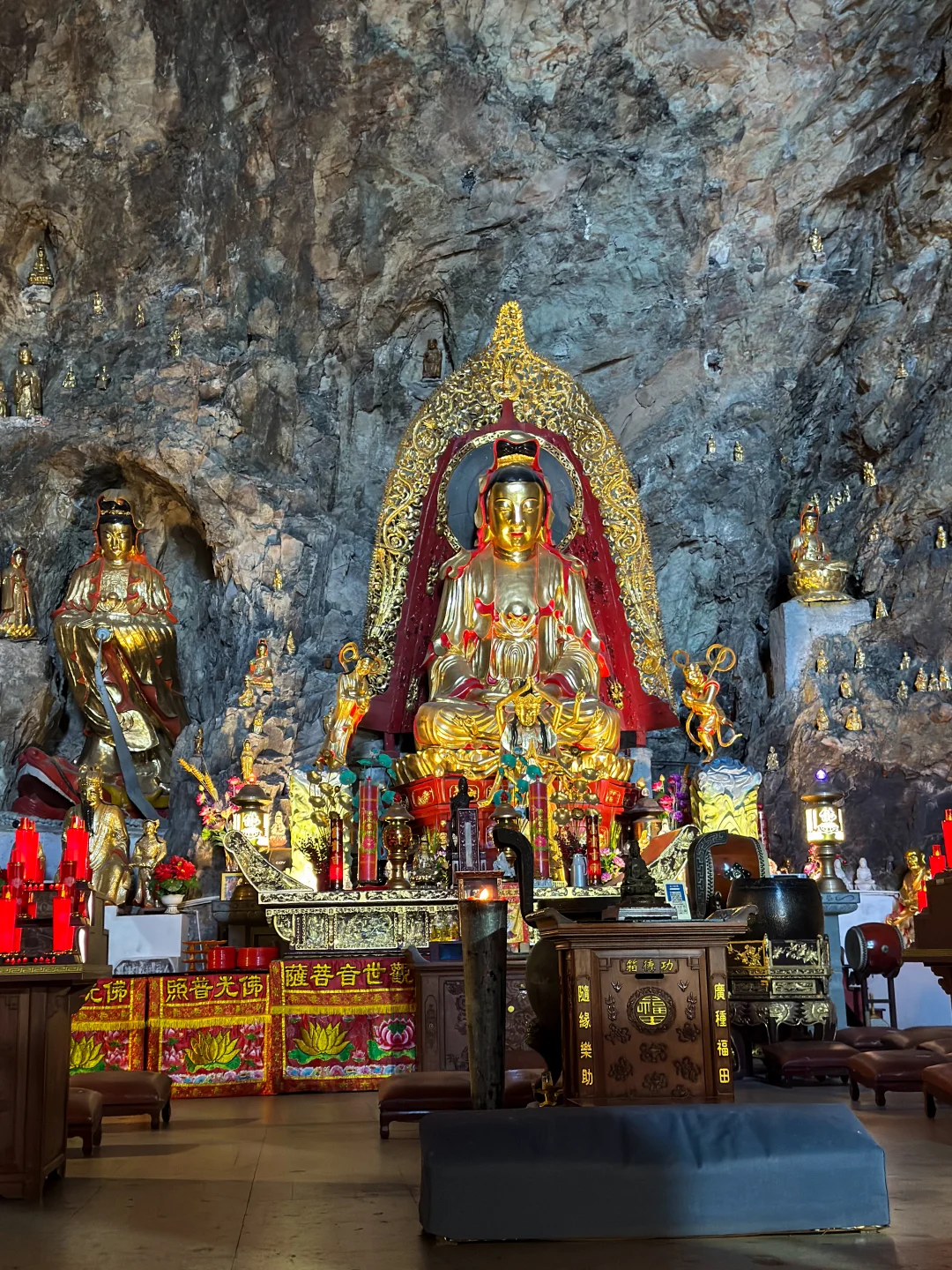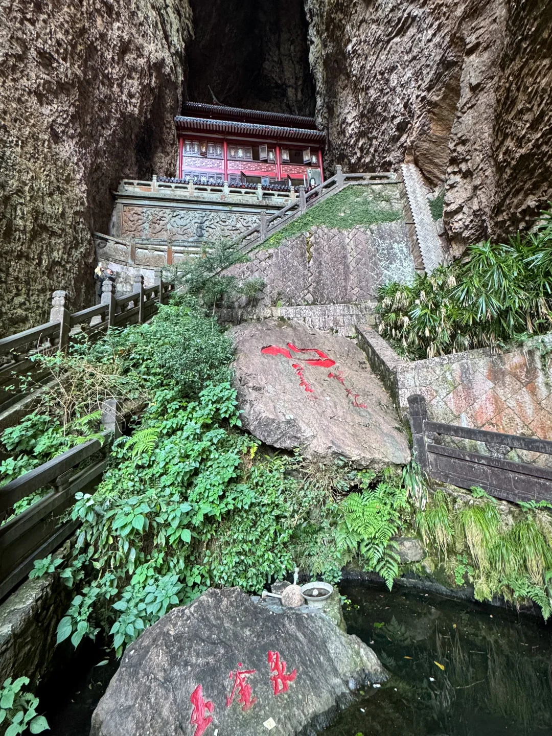 ✔️虽然是石壁建筑,但观音洞还是遵循了常规寺庙形制,自山门殿、天王殿按序排列分布,甚至还有一处悬崖上的放生池~~~