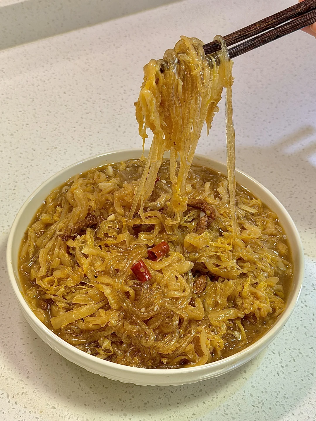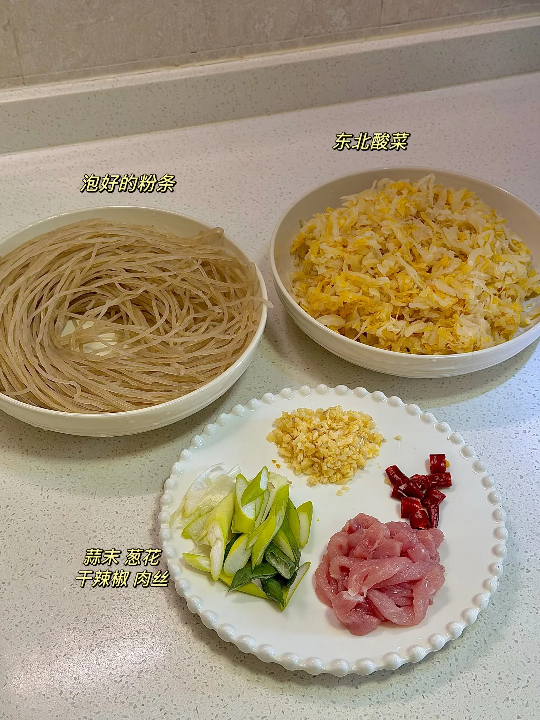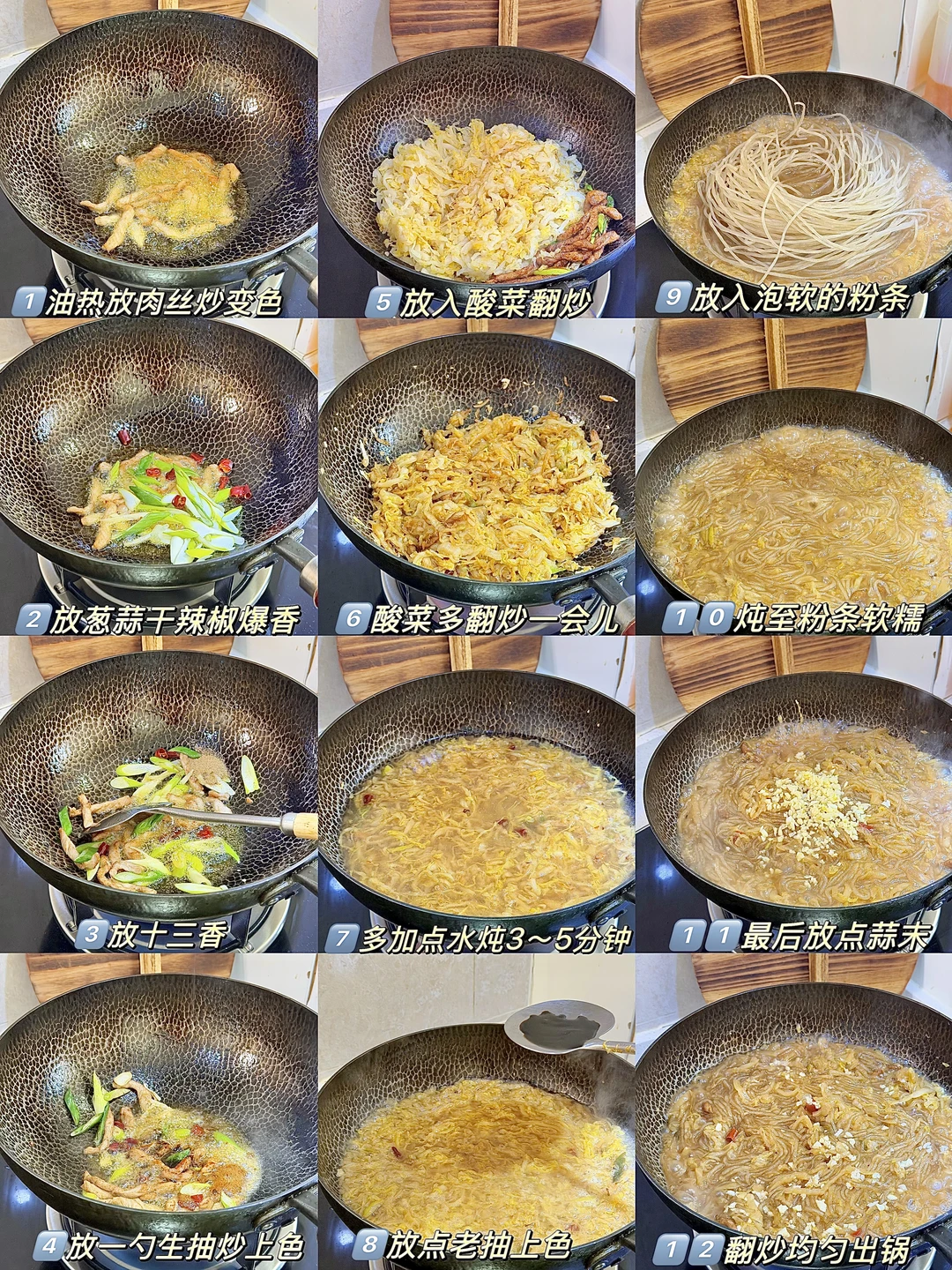今日份美食分享: 东北酸菜炒粉 . 食材:东北酸菜 细粉条 蒜末 葱花 肉丝 干辣椒 做法如图上⬆️ . 没吃过东北酸菜粉的一定要试试哦 贼好吃下饭😋跟着学做菜 爆款美食 做菜我是认真的 一人食吃什么 超级下饭的家常菜 粗茶淡饭最养人 东北酸菜粉 东北菜 冬天就想吃热乎的大锅菜 好吃到汤都不剩
