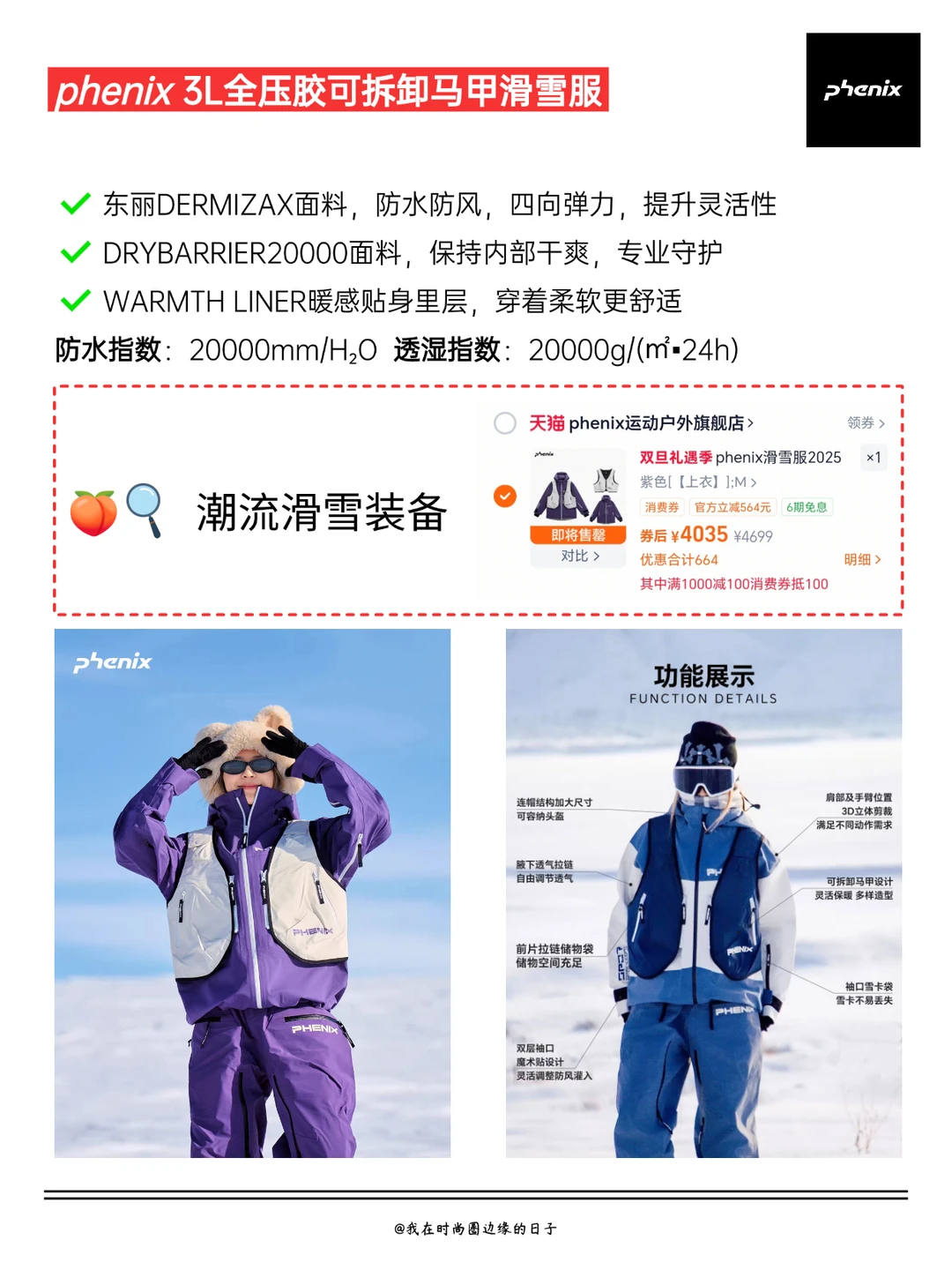3⃣Phenix3L全压胶可拆卸马甲滑雪服