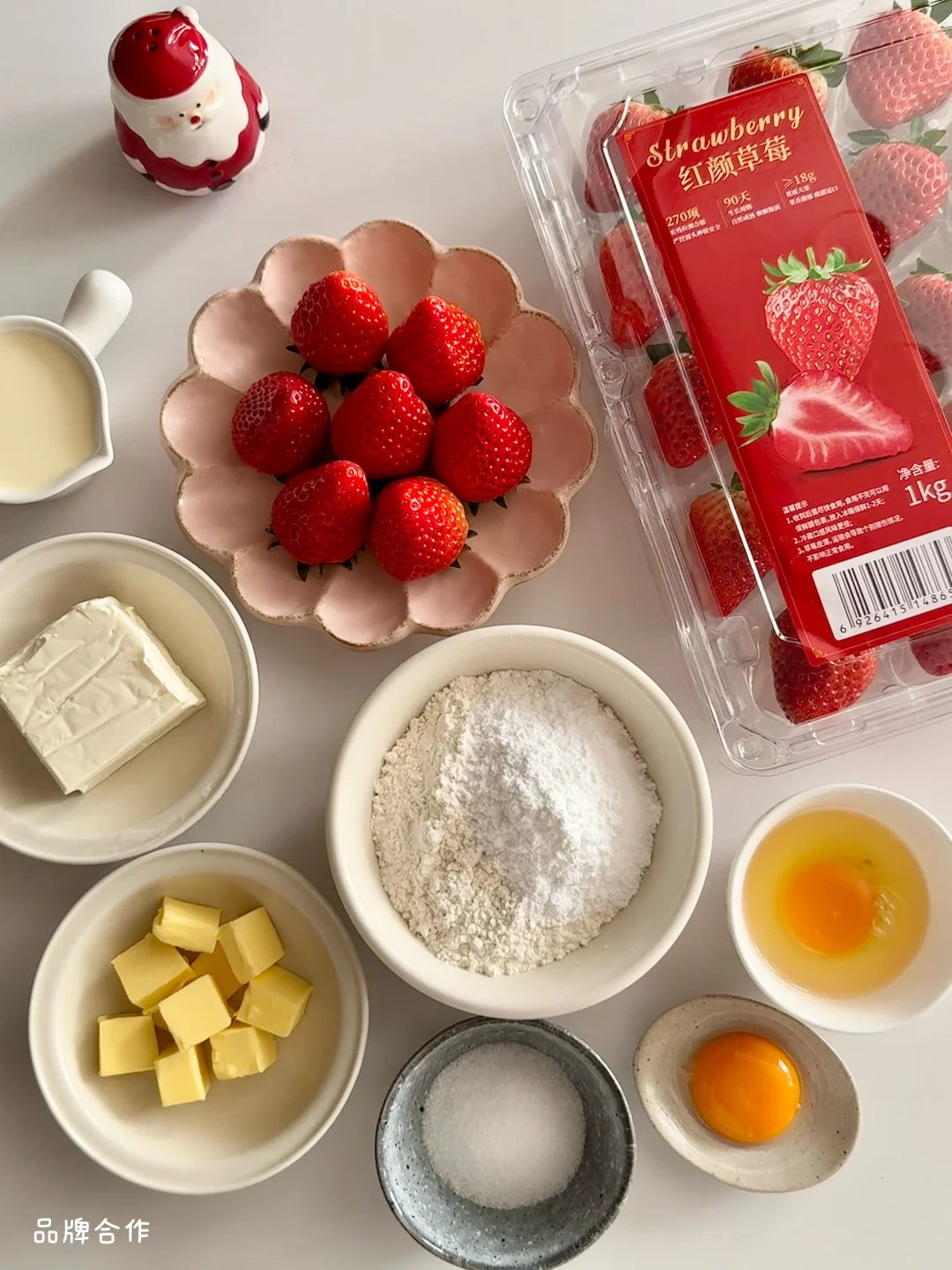 内馅材料:山姆红颜草莓、奶油奶酪100g、糖25g、淡奶油70g、常温鸡蛋1个、玉米淀粉5g、柠檬汁5g
