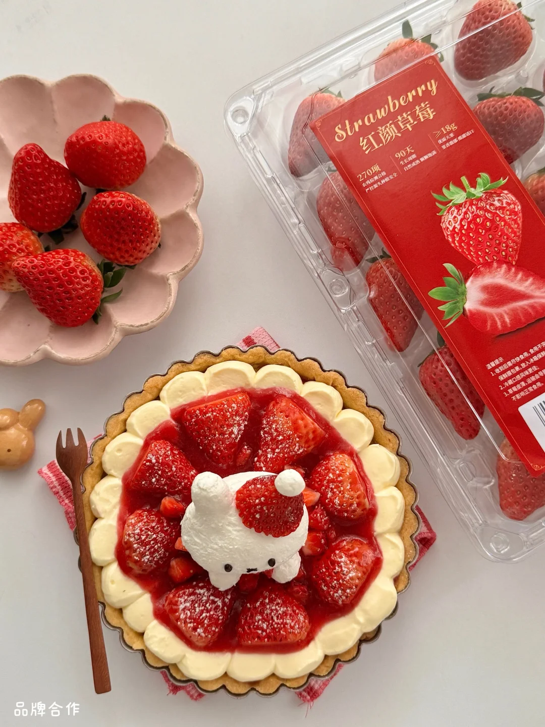 高甜草莓做甜品口感更佳,今天做了草莓芝士塔,还用酸奶捏了可爱的米菲兔,萌到不舍得吃~