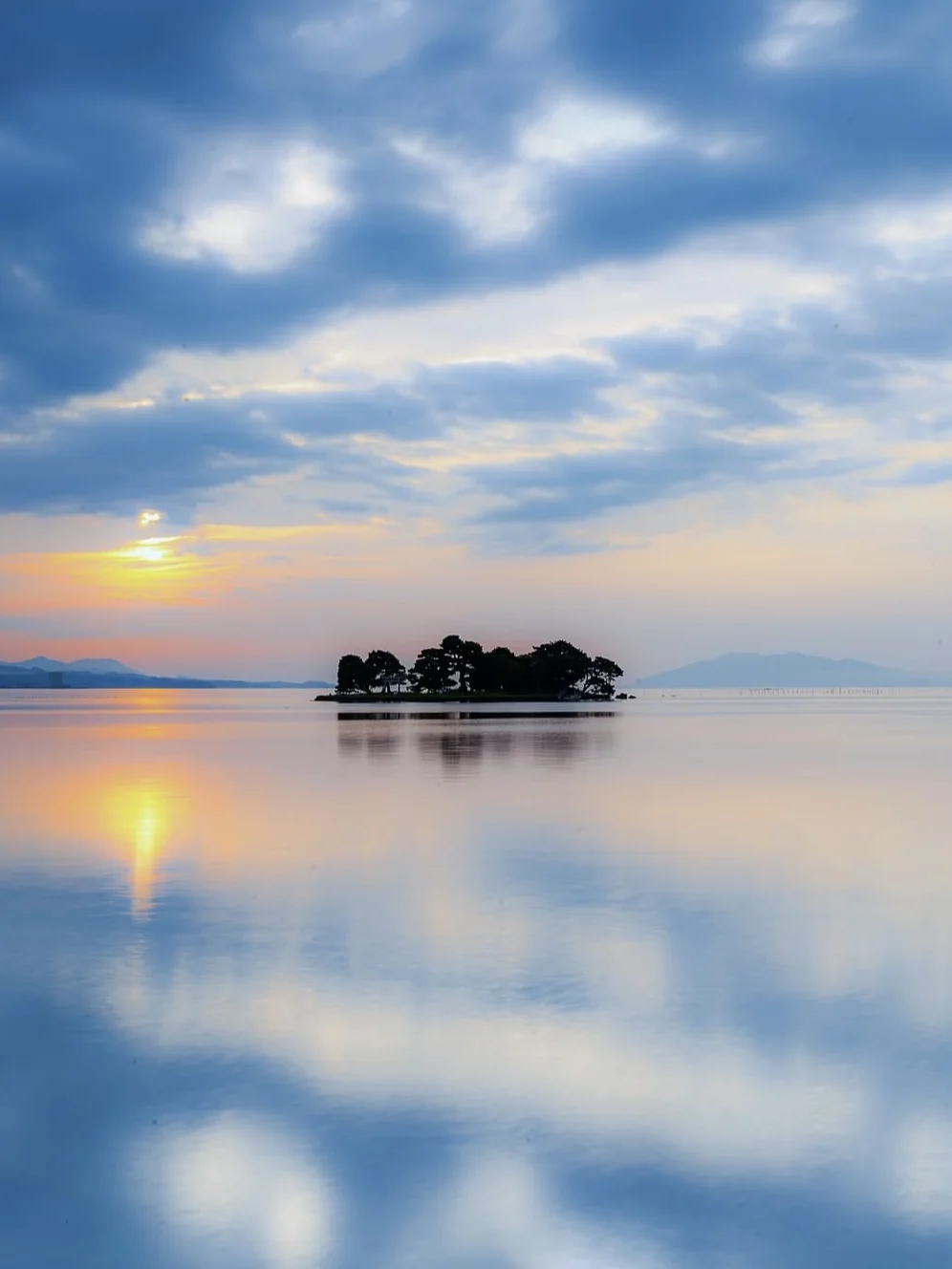 不需要特意找拍照点,随意走到湖边,就能看到日落。
