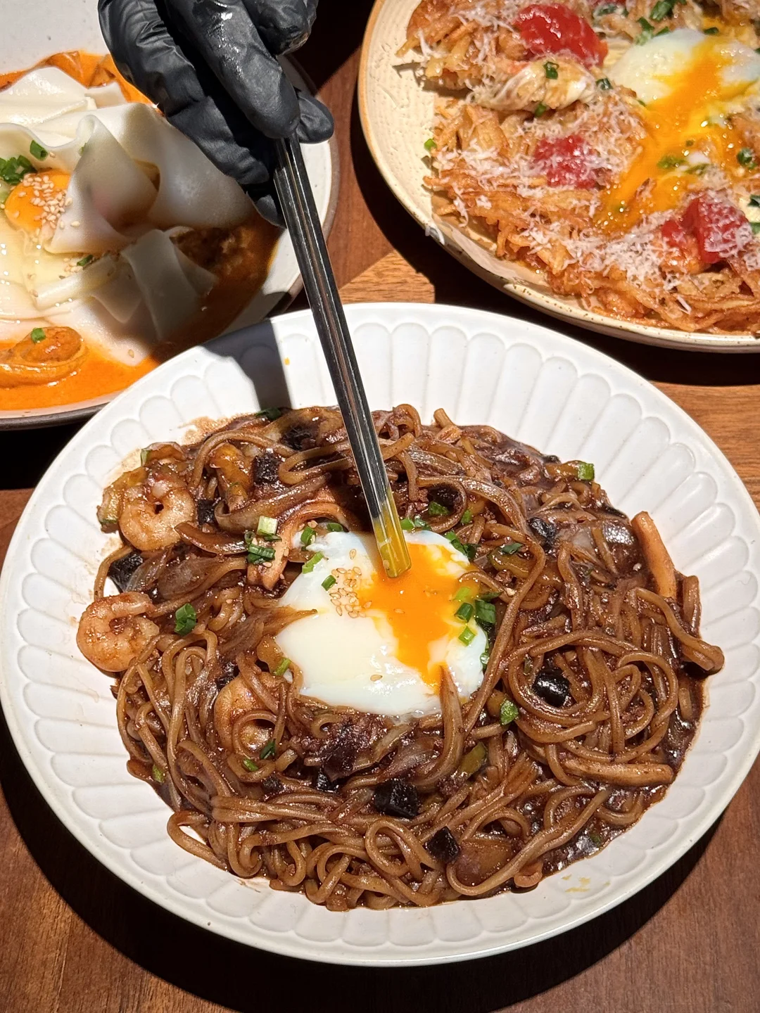 就在七宝!叫:韩吞)牛肠拼盘越吃越香!!雪花芝士炙烤排骨!奶香浓郁肋排大块肉多😭一口下去好过瘾!还有芝士流心虾仁土豆饼、炸酱面、…全都好看又好吃!值得n刷!