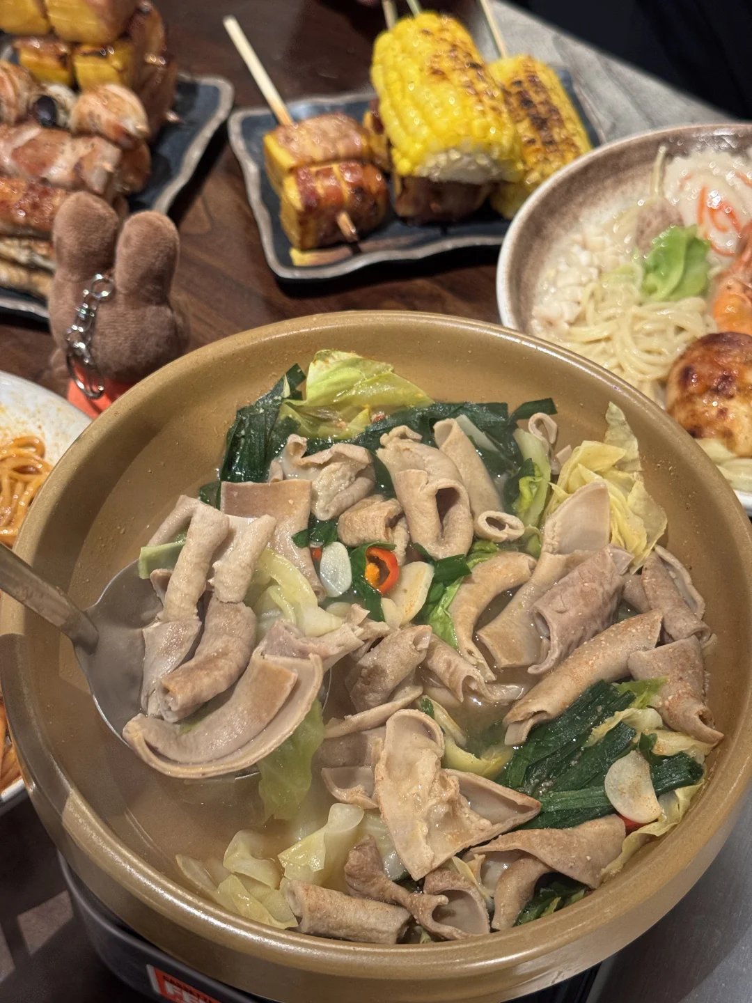 一桌家常味,暖透心窝窝~白菜油豆腐锅鲜掉眉,牛腩锅炖得软烂入味,桂花年糕甜丝丝的