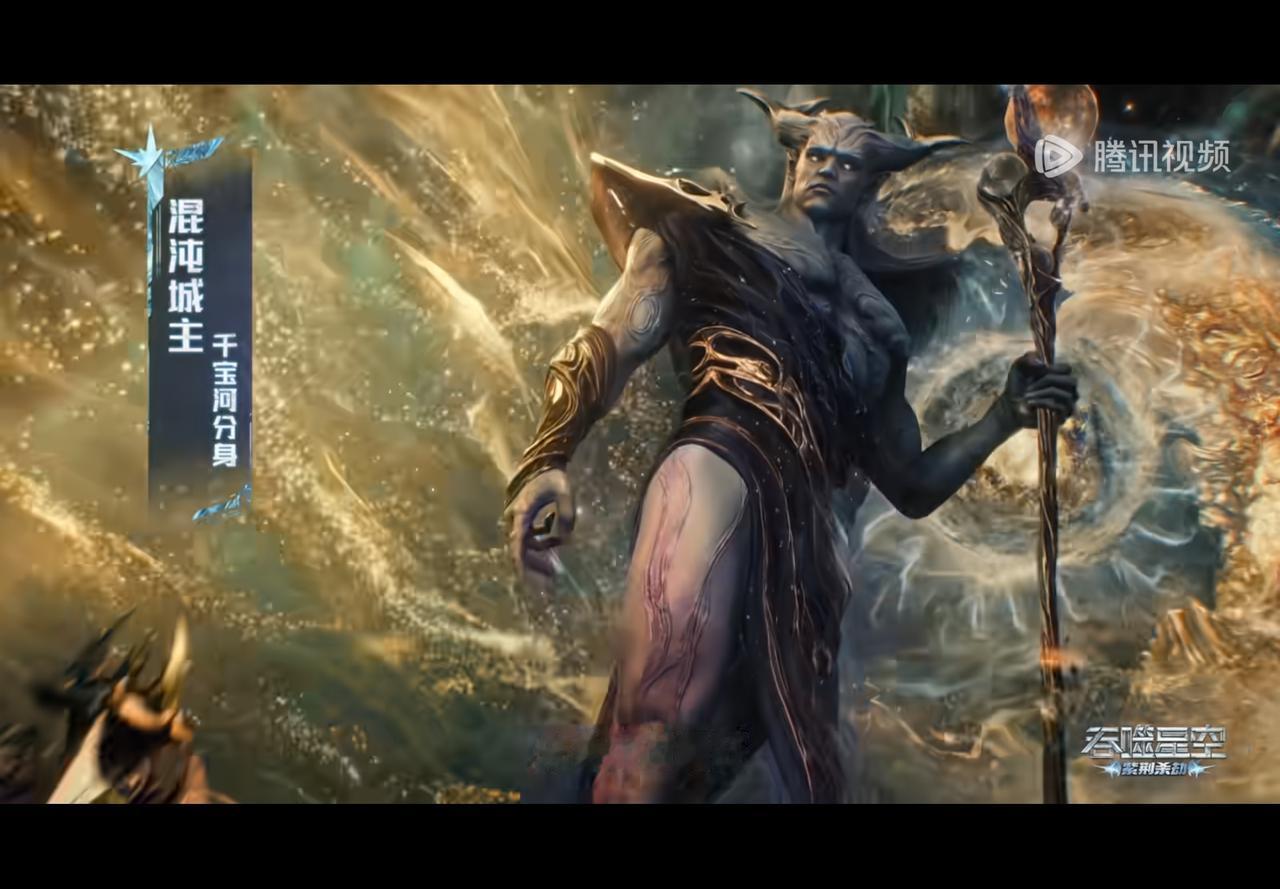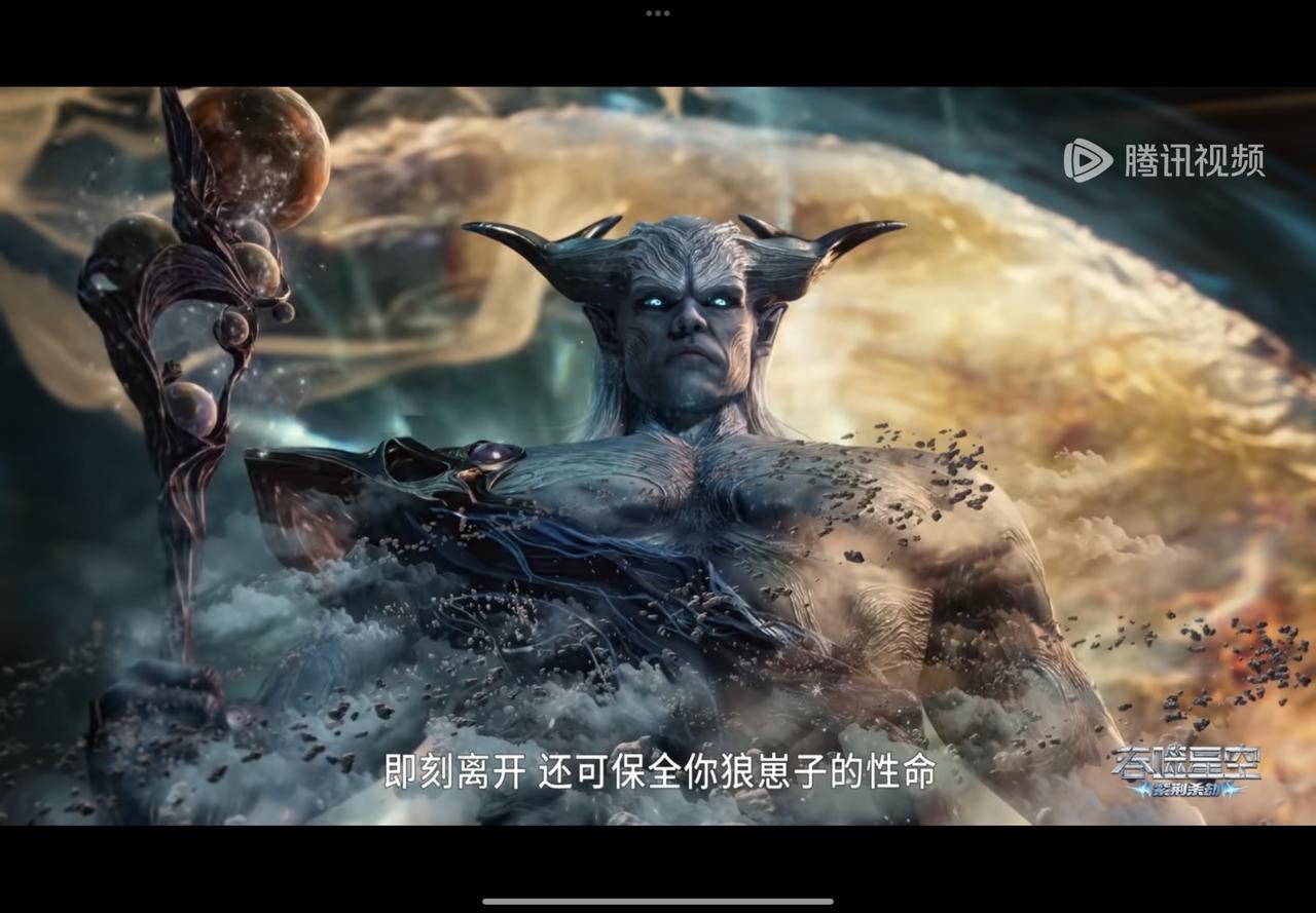 国漫吞噬星空根据片尾介绍混沌城主的分身之一,千宝河和上万公里高的巍峨的身体,全身皮肤泛着银色,而且那个拐杖真的很像很像很像几个星球串联而成的一样。千宝河这个分身应该是专门找寻一些宝物,洞穴之类的,而且人家一来就先就先询问天狼王,身为一族之长,却无故对我人类发难,注意看,“未免太猖狂了”,显然混沌城主分身已经开始动怒了。天狼王明显有点害怕后脚跟开始后撤了,但是为了面子还是得跟千空河和说一说,就先把过错先推给罗峰,反正这也是事实,但也不是炸取,而是各取所需。天狼王:小小蝼蚁,竟敢妄图撼动大树,罗峰:你不就是比我高大几百倍吗?!看我的,千宝河:天狼王你在我这里不也是跟小蚂蚁一样,还不速速走,显然千宝河已经早就知道来龙去脉了,但是那个兽神令牌肯定不会给的,所以只能先吓唬吓唬他,你赶快走,你还能保住你和自己主人的性命,天狼王也知道在这里继续纠缠的话,自己是没好果子吃的,竟然暂时弄不死刀河王,还不如暂时性的卖给混沌城主一个面子,(所以只能的说句硬话,说我今天给你个面子先走,罗峰不要落我的手里