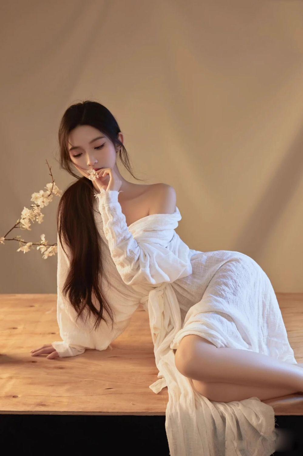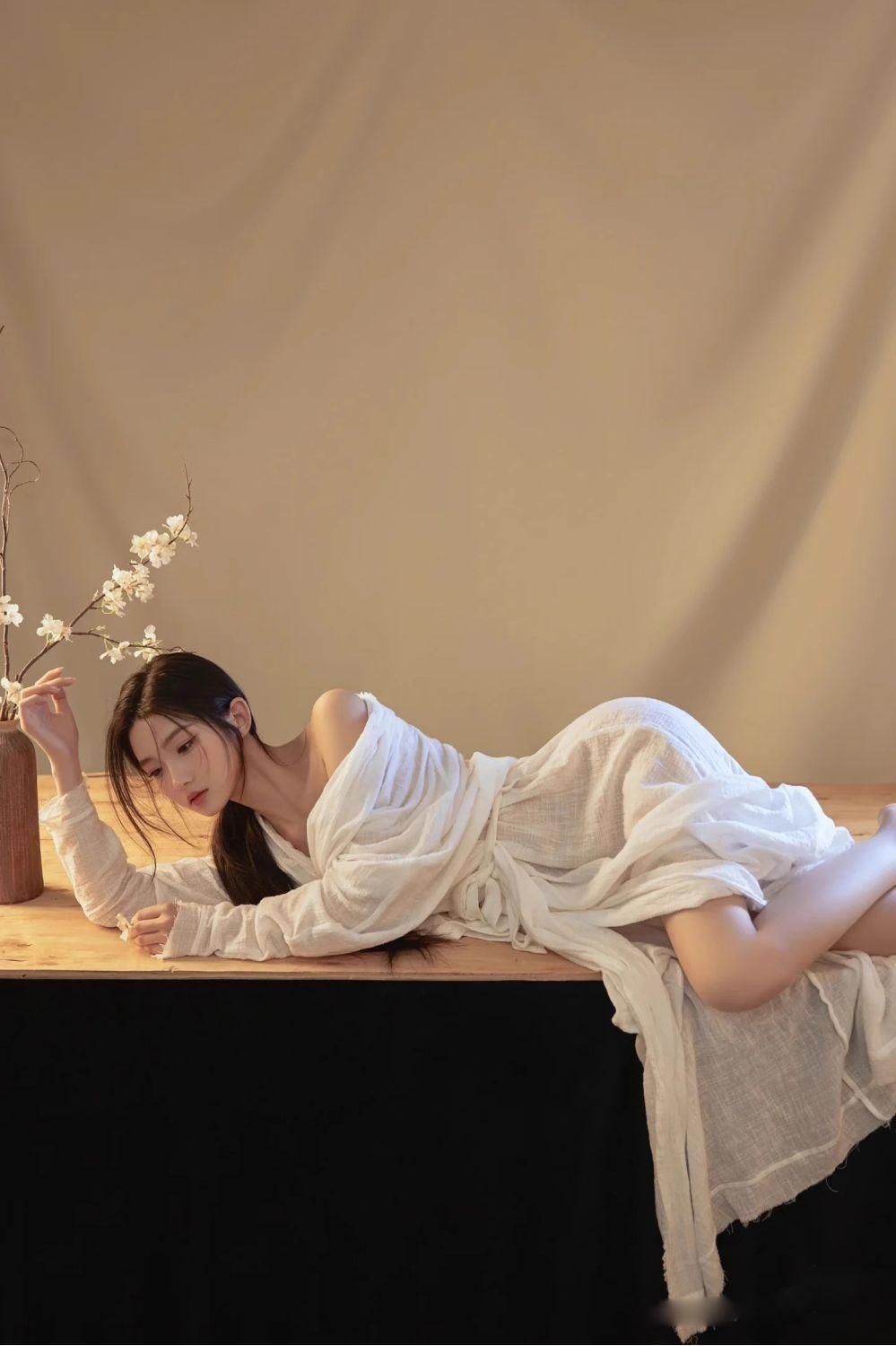 花落人独立,月照影成双。高雅气质美女