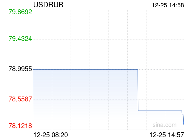 新浪外汇消息2025年12月25日,截至14时58分,外汇市场上美元兑俄罗斯卢布汇率跌破1美元兑换78.2000俄罗斯卢布。跌幅为-1.0070%