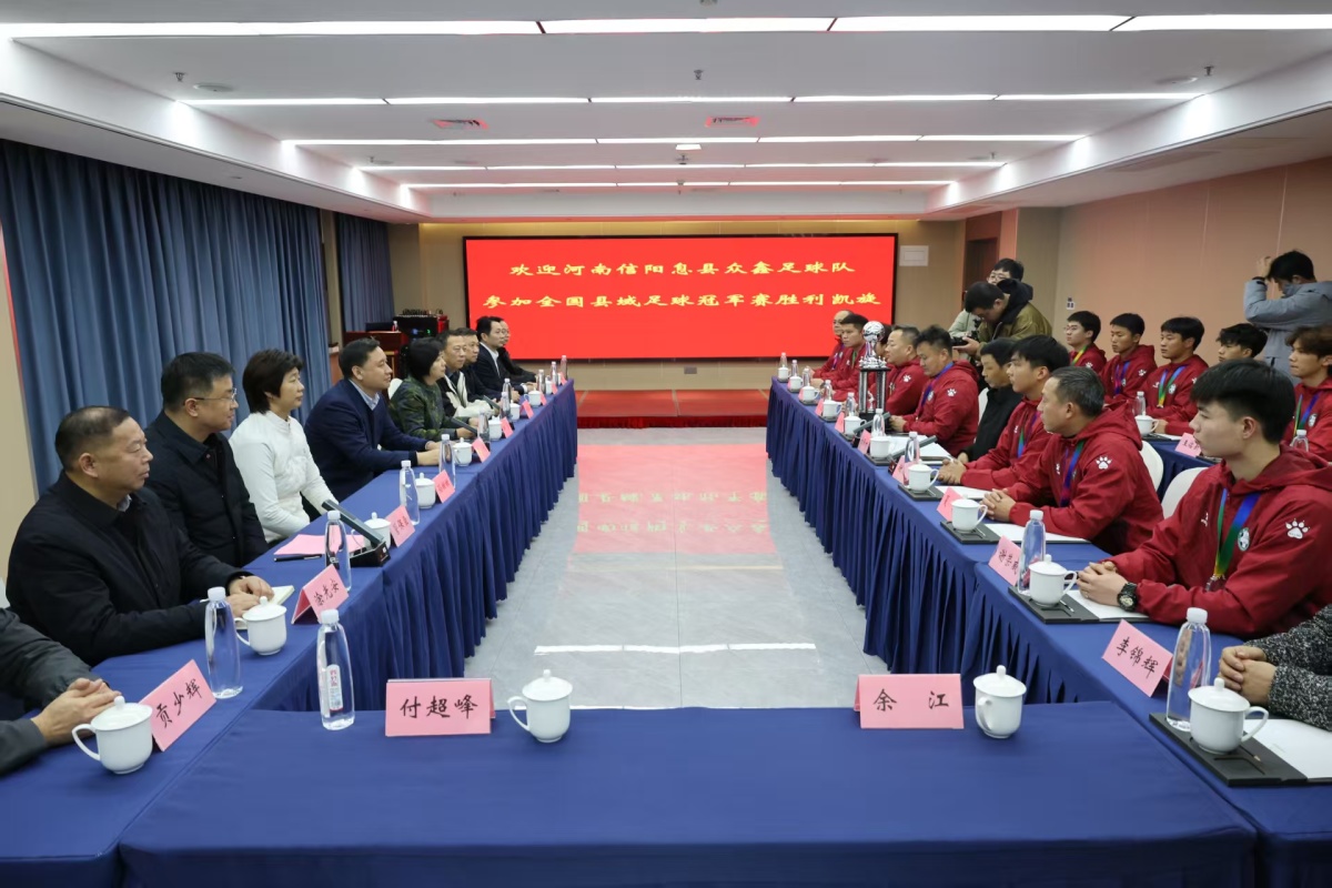 12月24日晚,河南省体育局副局长田间、群体处处长孙甜甜和省足协第六届换届筹备工作组组长付汝诚一行,专程从郑州赶往信阳,和信阳市、息县的相关领导一起迎接球队凯旋,向他们取得的优异成绩表示祝贺。